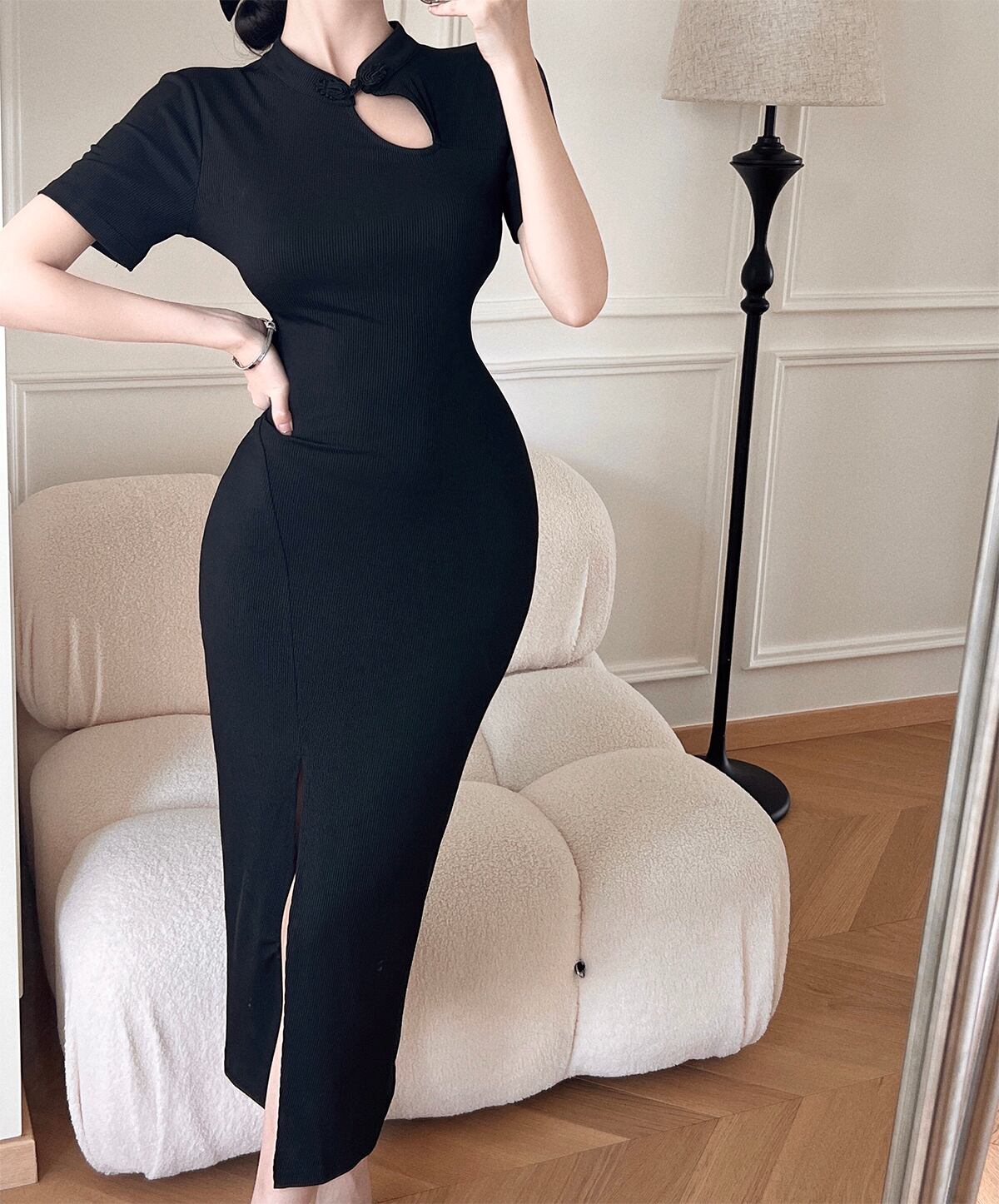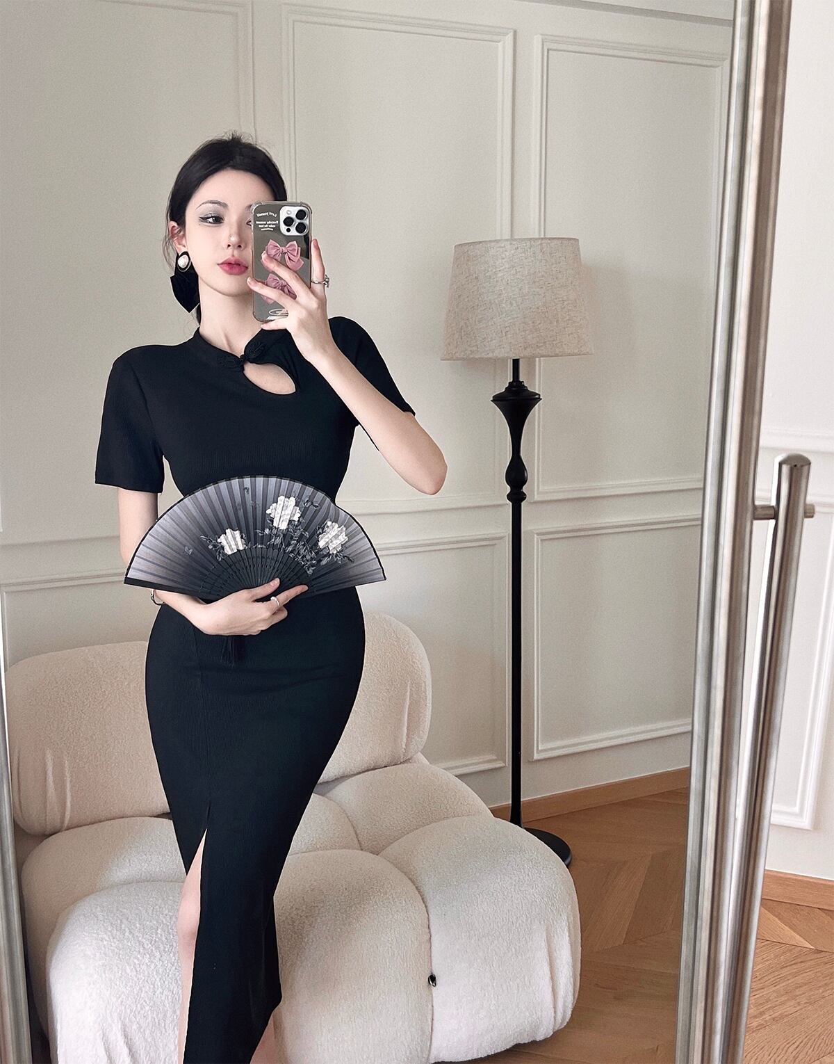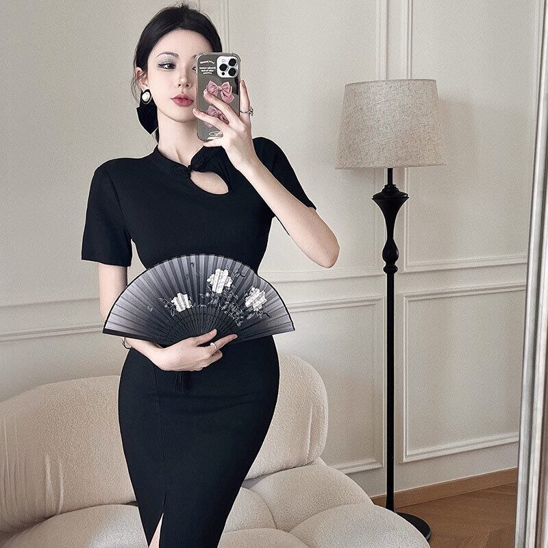 改善されたチャイナ 2022 新しいリトル ブラック ドレス若い気質のセクシーなスリム スリット ミッドレングス ドレス micat39086542376
