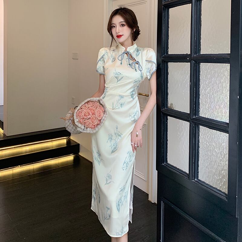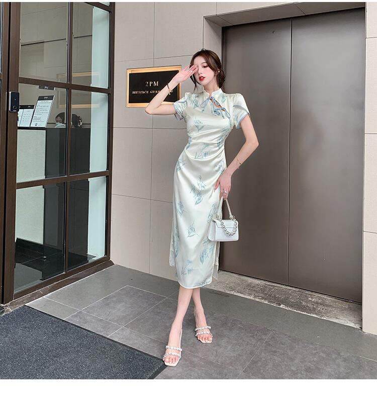 中国風の改善されたチャイナ 2022 新しい若い気質ハイエンド レースアップ スリム ミッドレングス ドレス micat5771597355