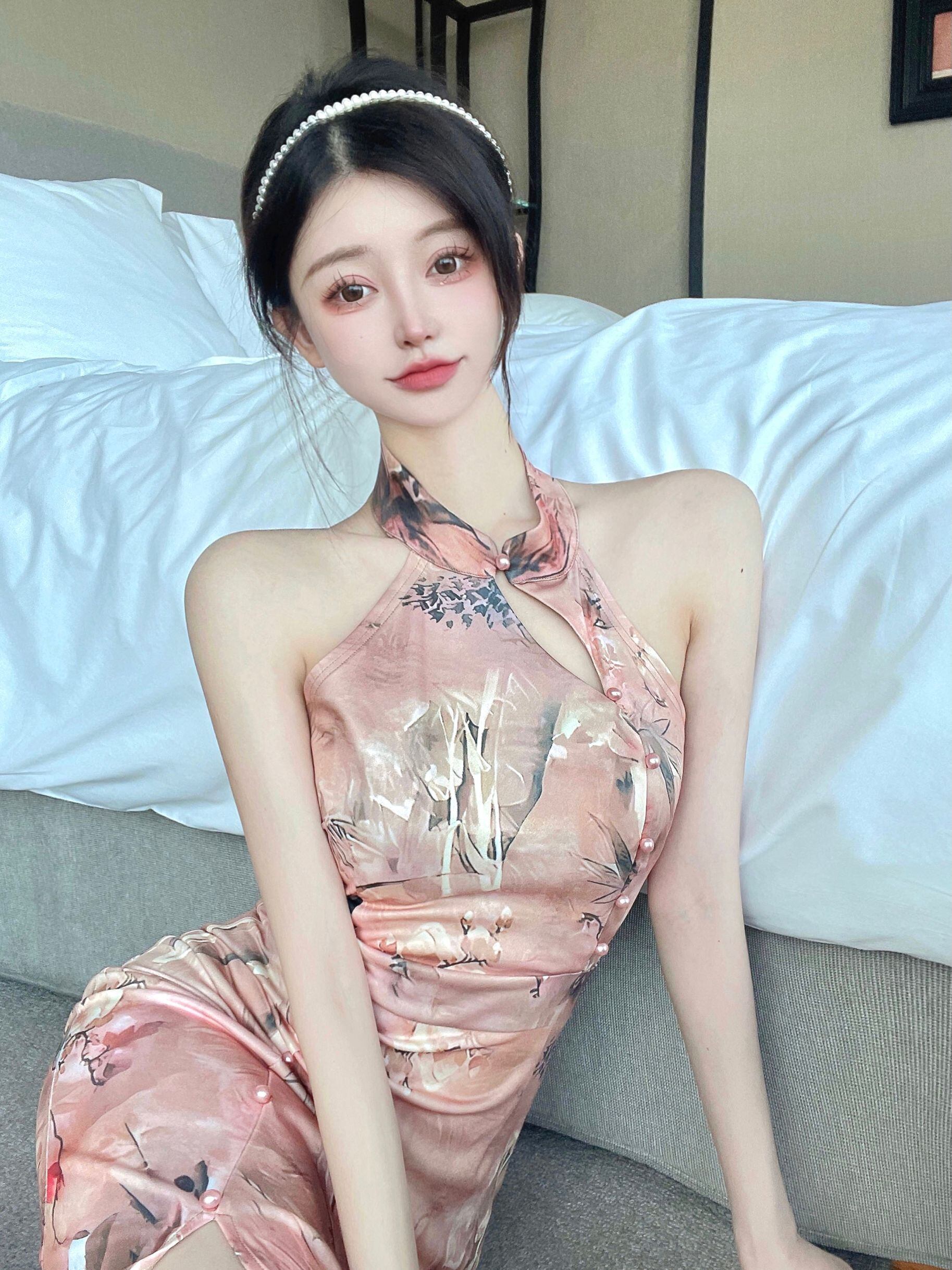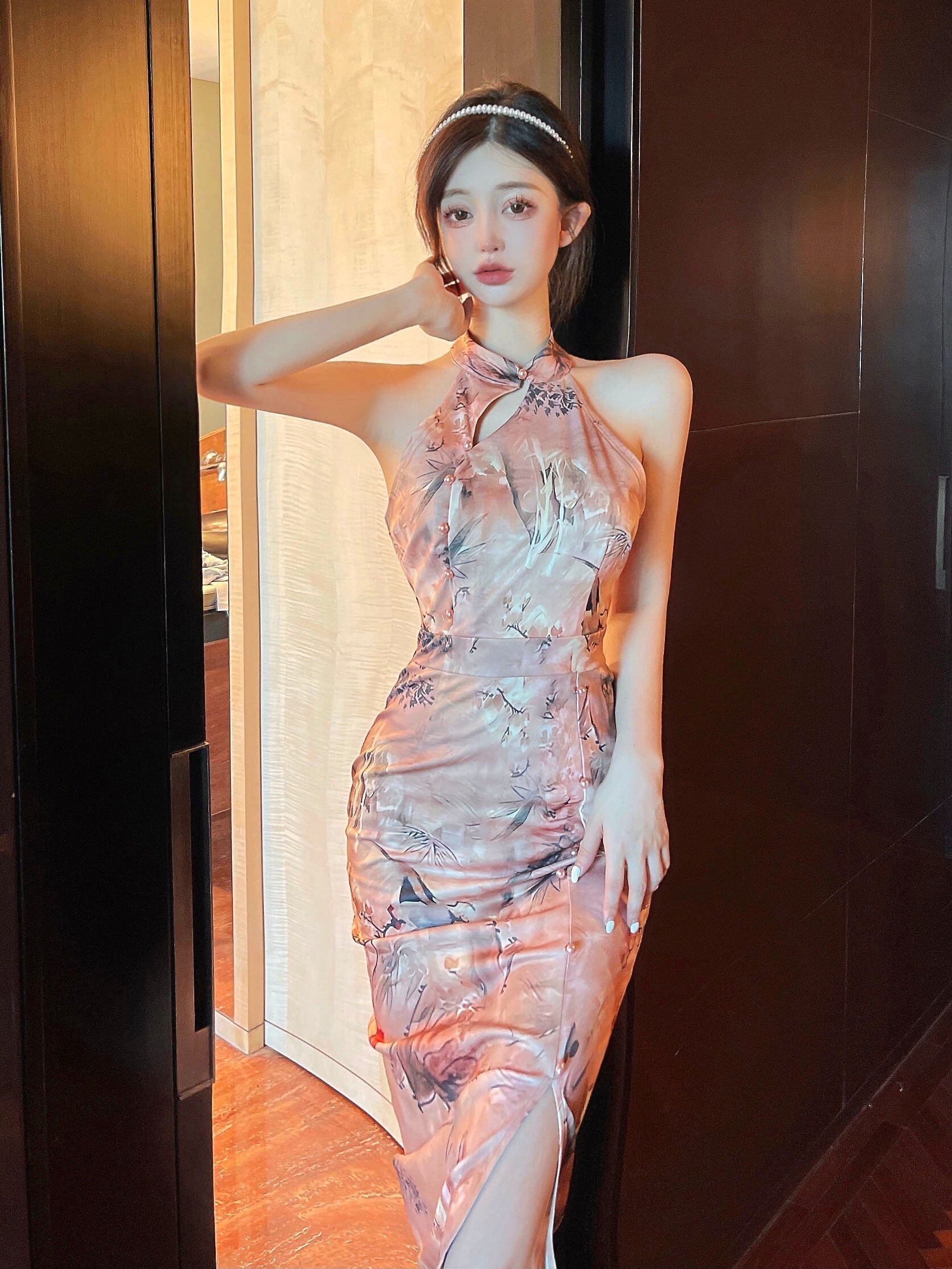 ネットレッドライブ放送のアンカー服の女性の新しい中国の若いセクシーなオフショルダーのミッドレングスの改善されたチャイナドレス micat58097770760