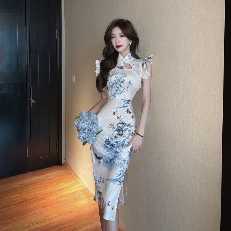 チャイナ ドレス イブニング ドレス ハイエンド ライト ラグジュアリー ニッチ スモール ドレス パーティー 気質 中国風 スモール フライング スリーブ ミッドレングス ドレス micat29751561937