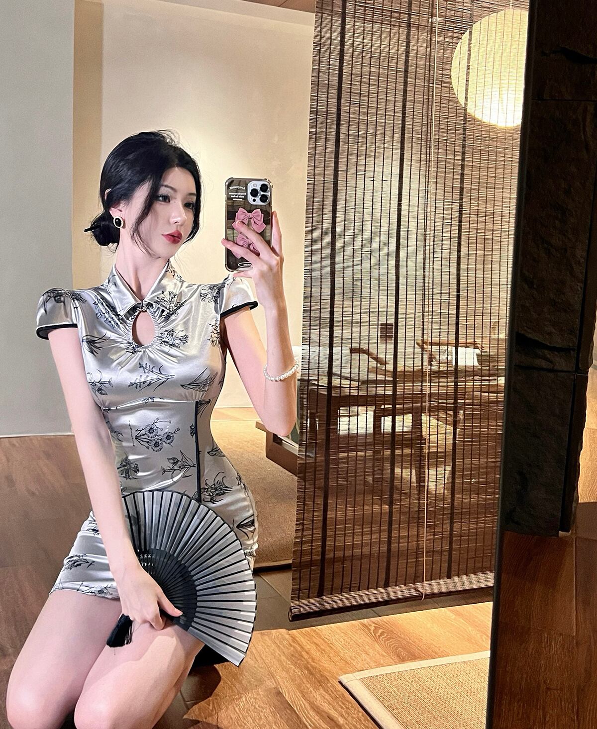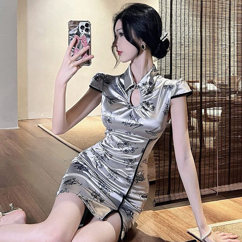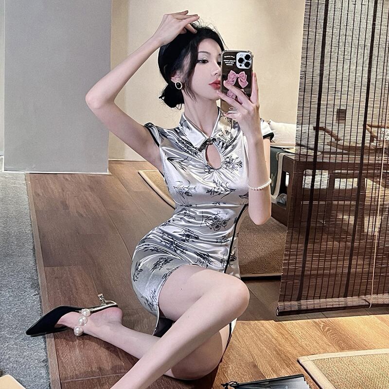 中国風の改良されたチャイナ 2022 新しい若い生放送アンカー セクシー バッグ ヒップ ショート スリット ドレス micat34194144882