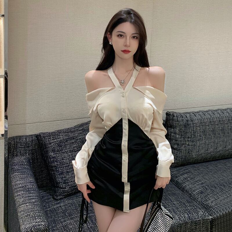 初秋の女性の新デザインセンスニッチシャツスカートeign気質セクシーなオフショルダー長袖バッグヒップホルタードレス micat78641753539