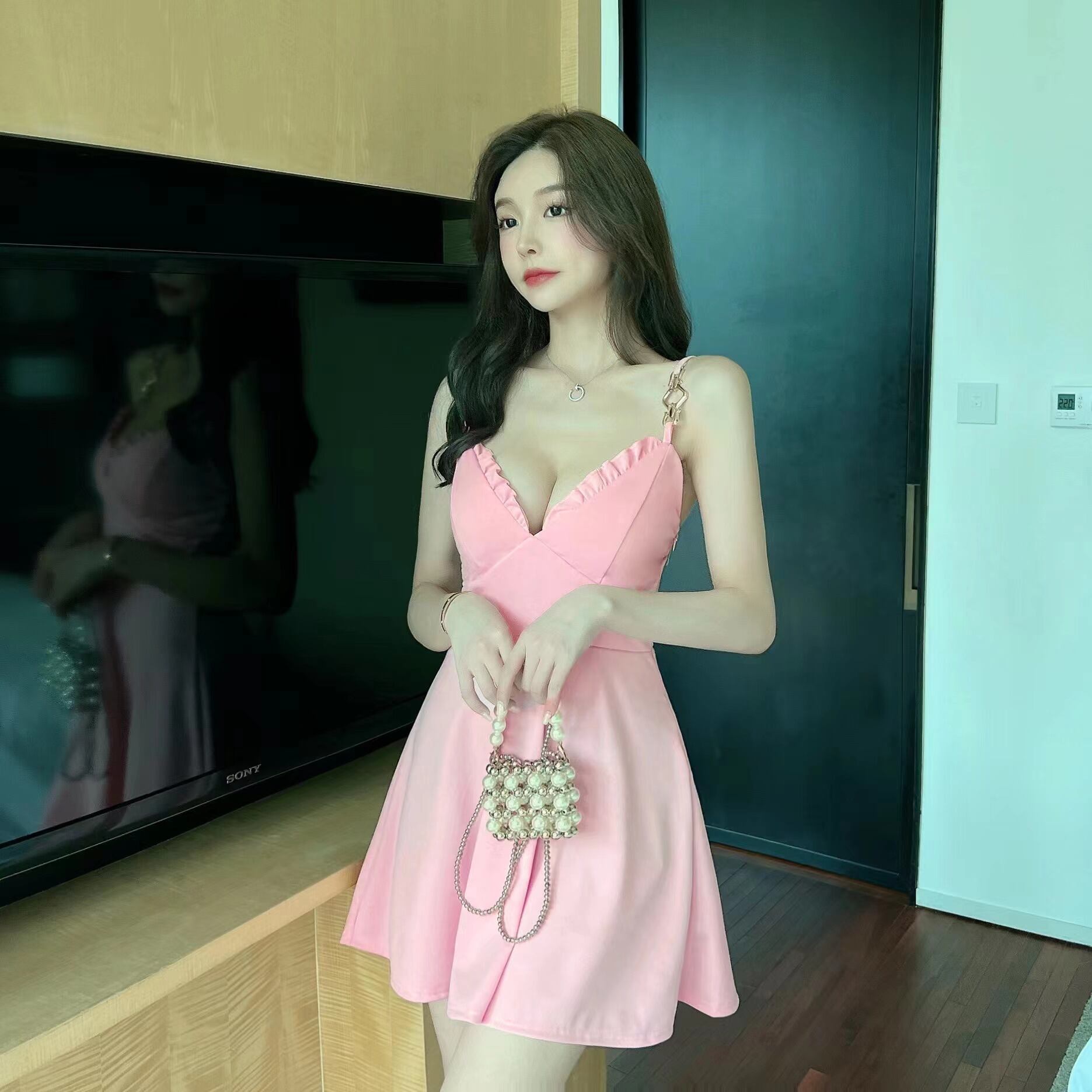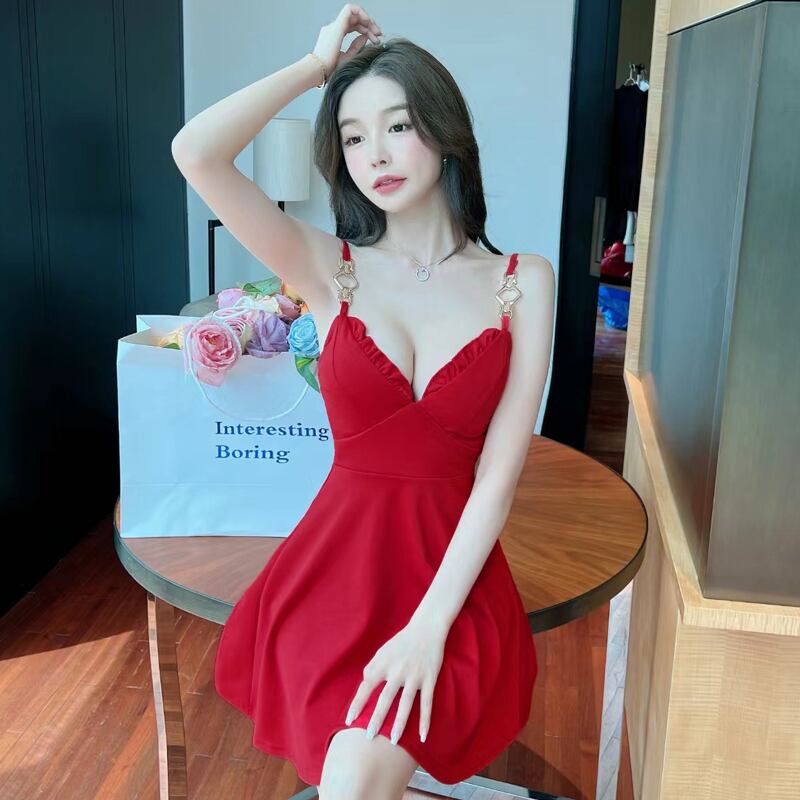 ナイトクラブ レディース ナイトワークウェア 作業服 セクシー ローカット 深いVネック ウエスト スリム サスペンダーワンピース micat18363729919