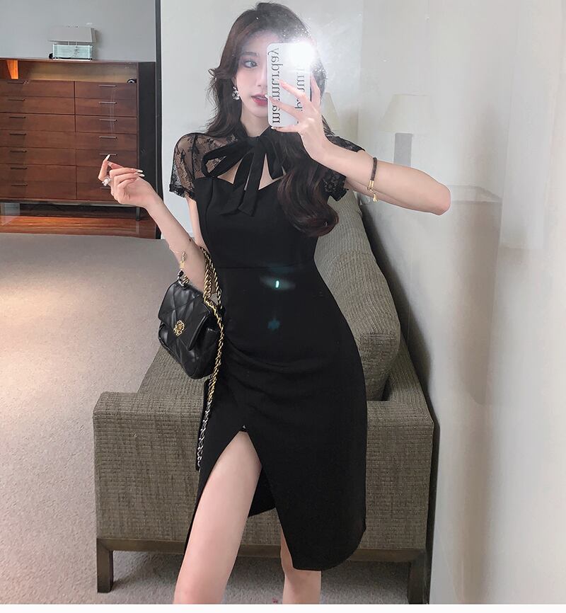 黒のチャイナドレスの若い気質のハイエンドデイリーレースの改良版のセクシーなレースのステッチのミドル丈のドレス micat67296097099
