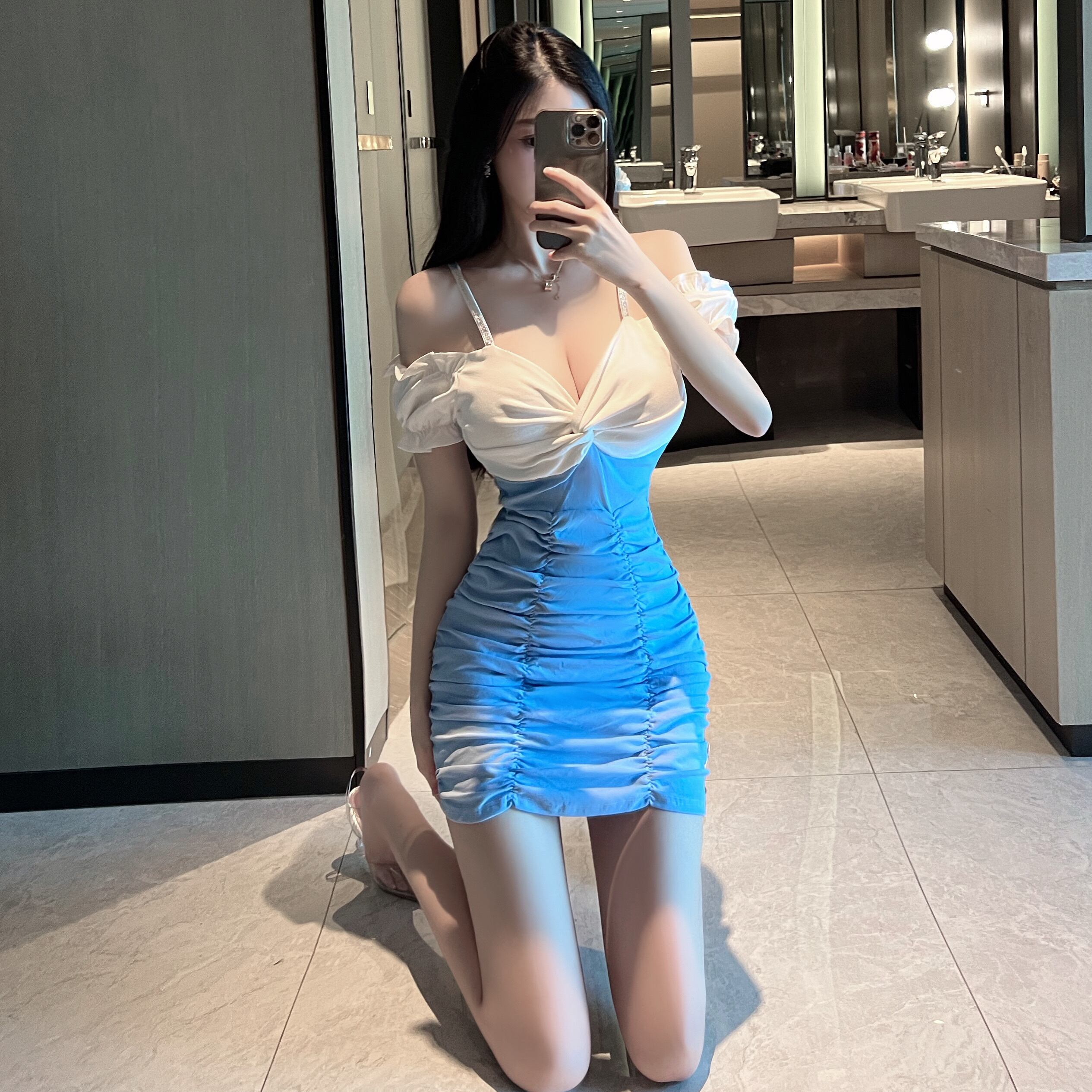 ナイトクラブ レディース ナイトワークウェア 作業服 セクシー ローカット 深いVネック フレンチパフスリーブ サスペンダードレス micat87658984567
