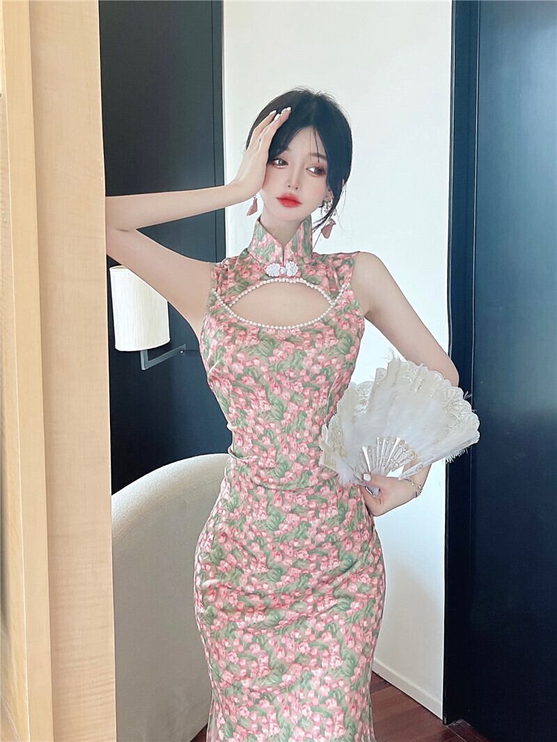全国潮チャイナドレスイブニングドレスロングスカート女性の若い気質ハイエンドハイエンドセンス改良されたレトロ花柄ドレス micat6324541700