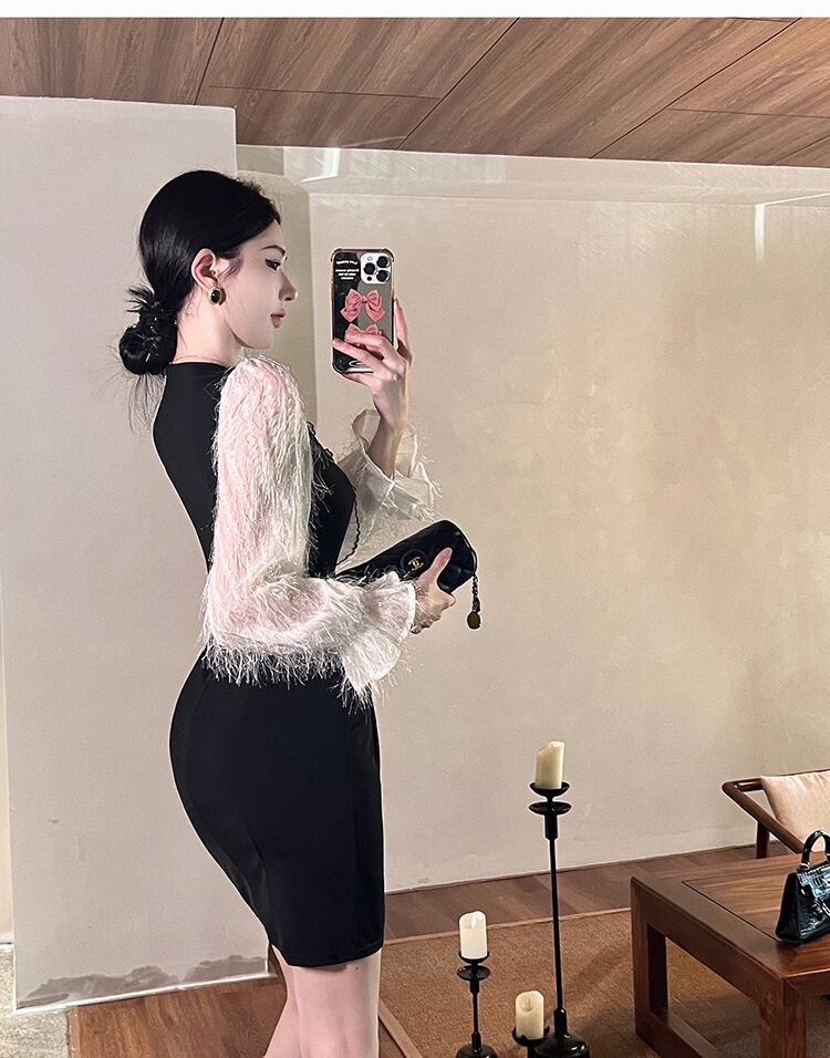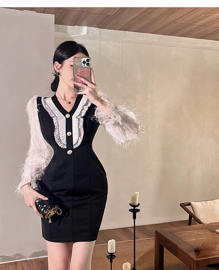 ヘップバーン スタイル パーティー ドレス スカート フェミニン気質ライト高級ニッチ ハイエンド フレンチ秋長袖ショート ヒップ ドレス micat79398298287