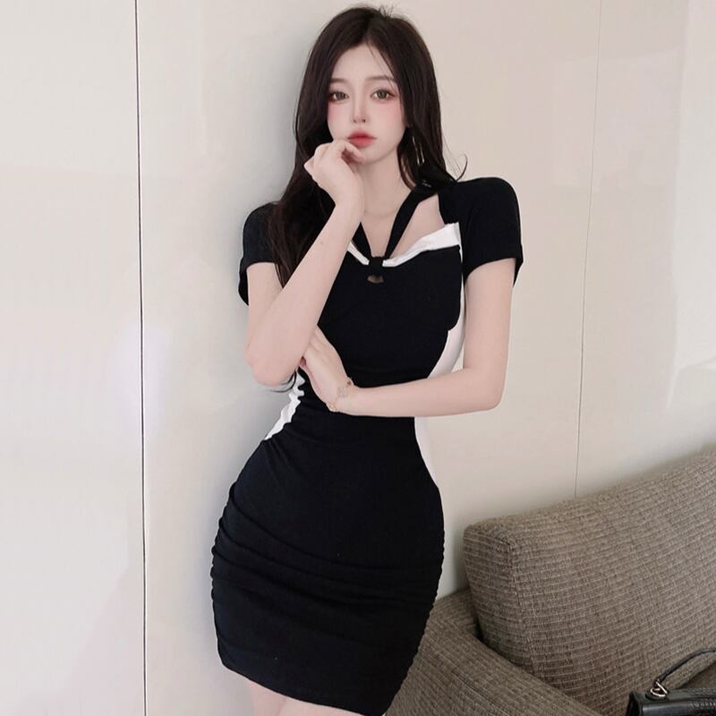 夏の婦人服2022新デザインセンスニッチヒットカラーセクシースクエアネック半袖ホルターネックドレス micat12927346812