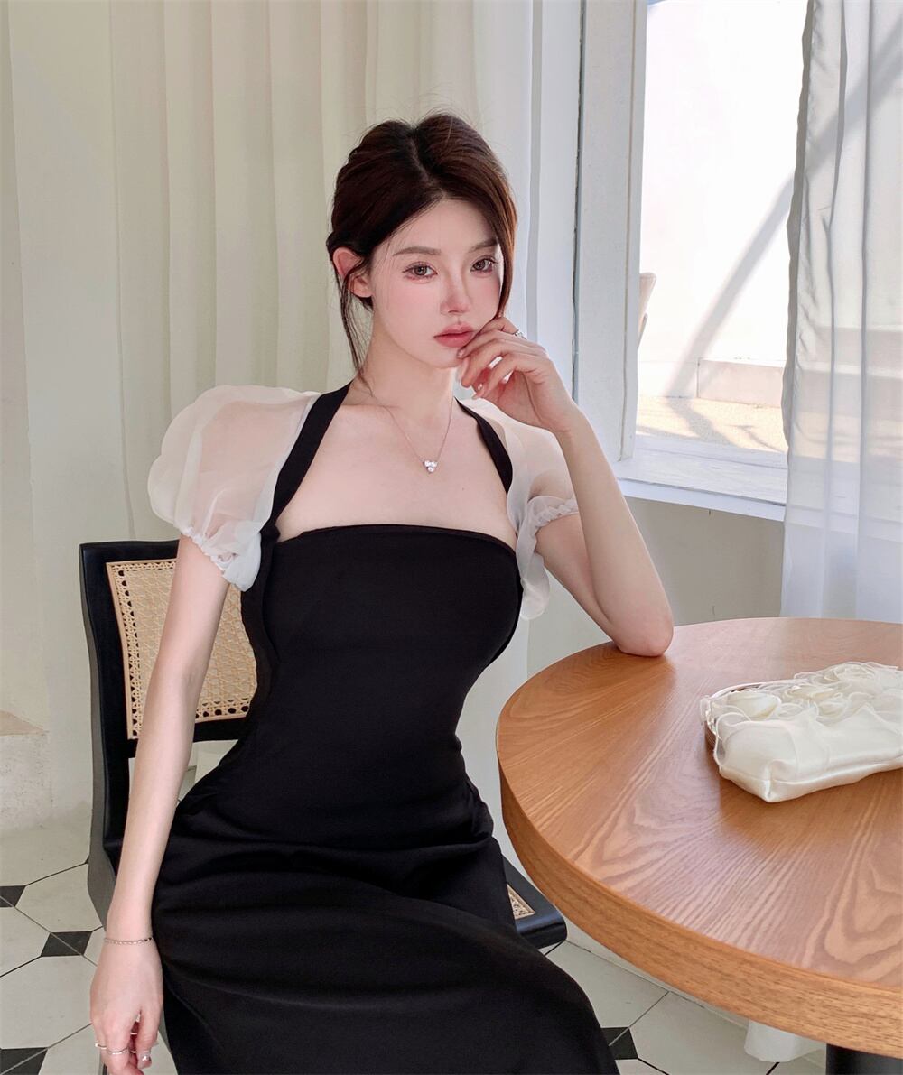 ヘップバーン スタイル イブニング ドレス スカート フェミニン気質ライト高級ニッチ ハイエンド フレンチ セクシーなパフ スリーブ チューブ トップ ホルター ドレス micat84724038947