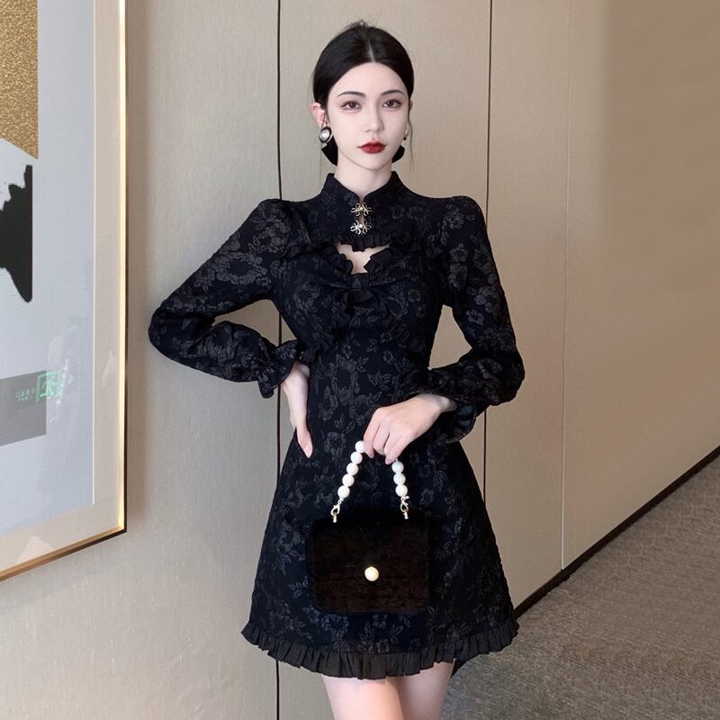 中国風の改良されたチャイナ 2022 年の新しい秋の若い気質の女性のハイエンドの長袖の黒のドレス micat1634512021