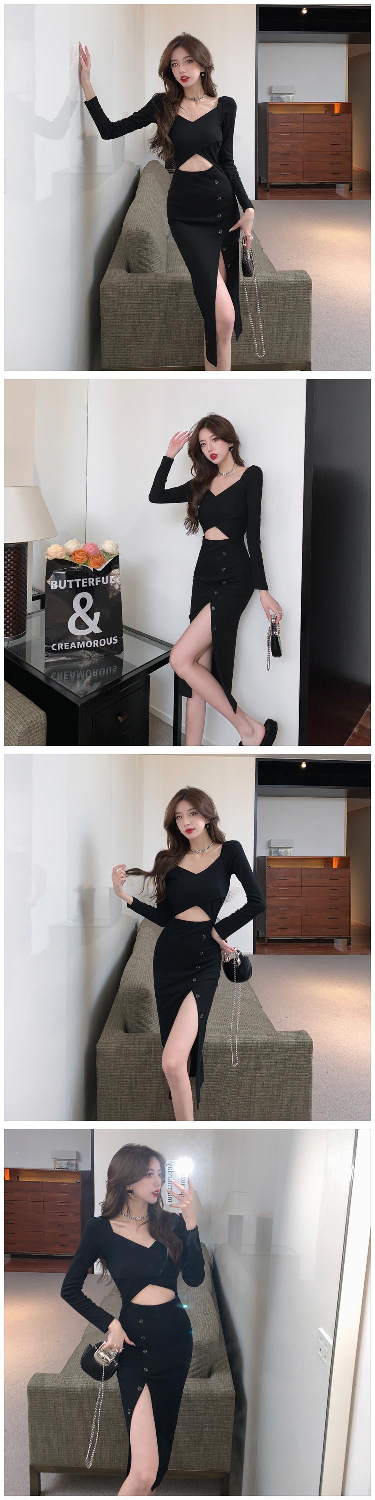 今年は初秋の女装が人気で、ハイエンドの王室姉妹のスタイル、セクシーなくびれウエスト、中丈の長袖ワンピース micat57372879486