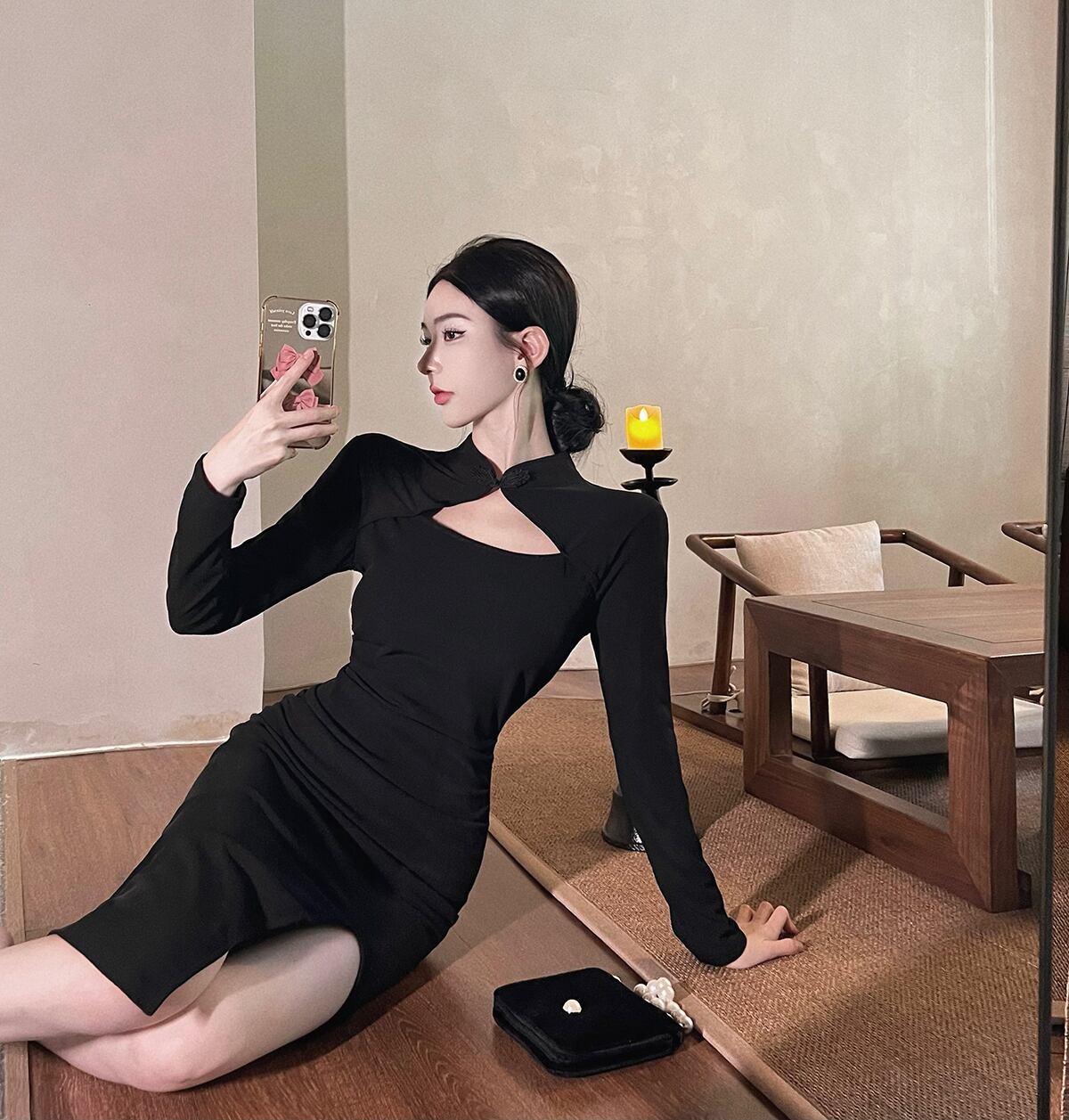 ライブ服女性アンカー pogenic ハイエンド純粋な欲望スタイル若いセクシーな中空黒変更されたチャイナ ドレス micat37389698338