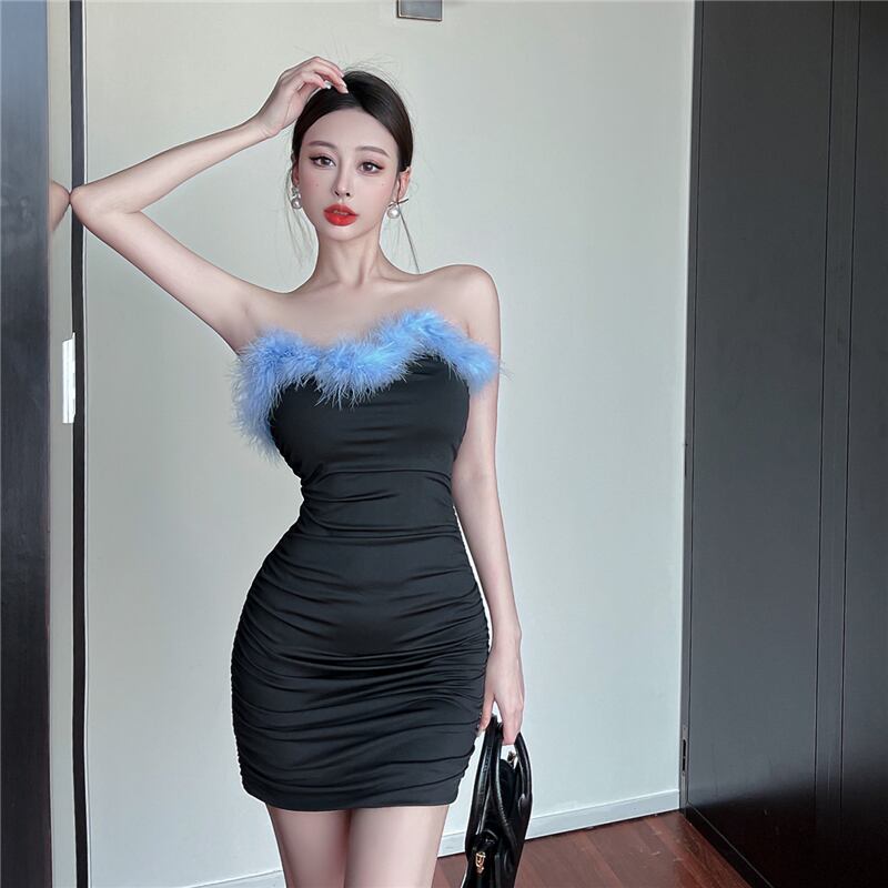 ナイトクラブのセクシーな女性の夜の小さなドレス宴会気質ダチョウ毛深いショート タイト バッグ ヒップ チューブ トップ ドレス micat41252492055