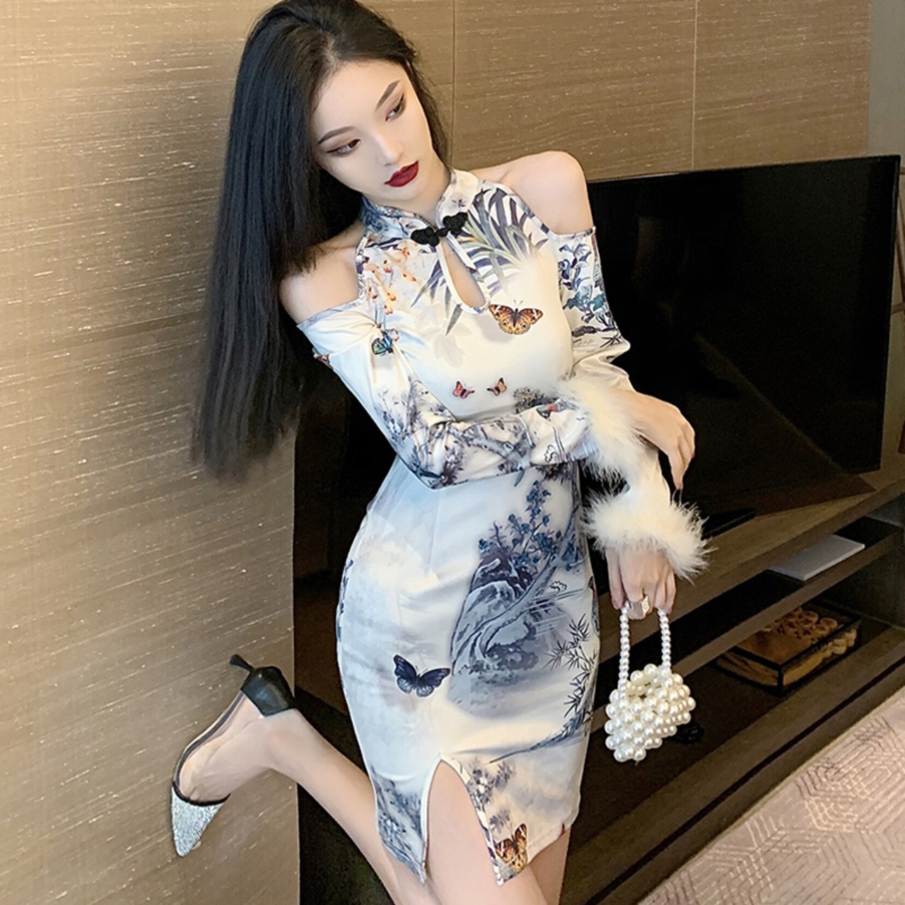 ライブ衣装女性アンカーポジェニック秋冬若いセクシーなオフショルダー長袖改良されたチャイナドレス micat75941562837