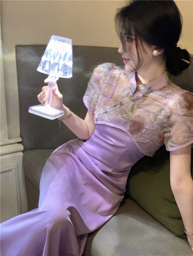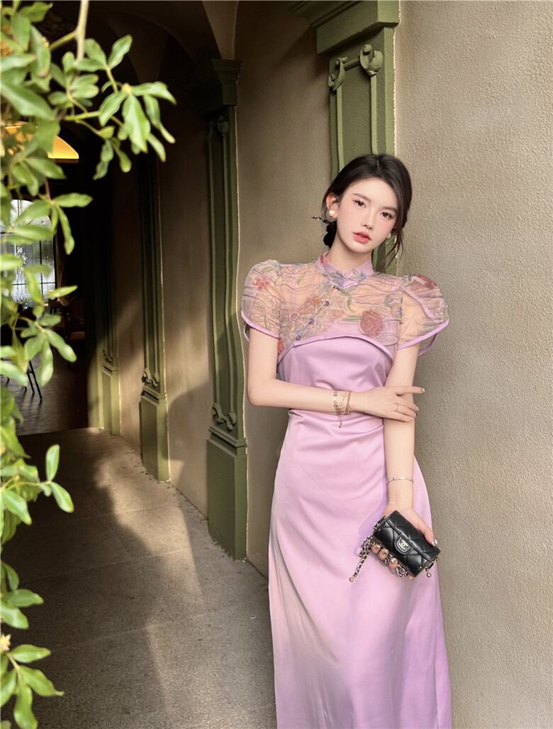 チャイナ スーツ女性 2022 レトロ ツーピース ハイエンド イブニング ドレス ショール トップ + サスペンダー ドレス micat19891941833