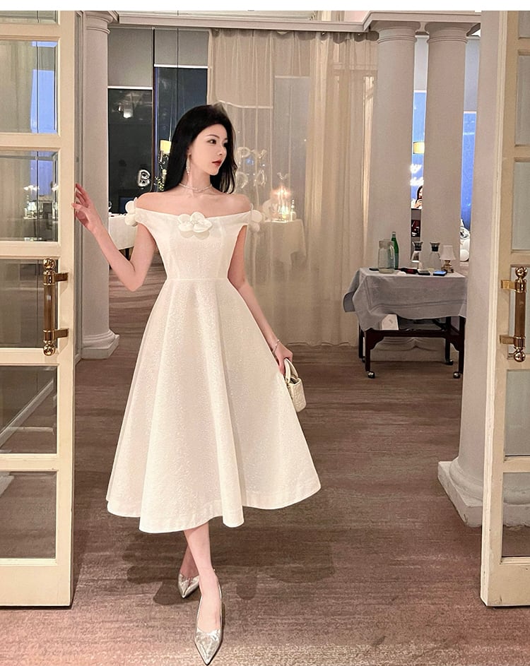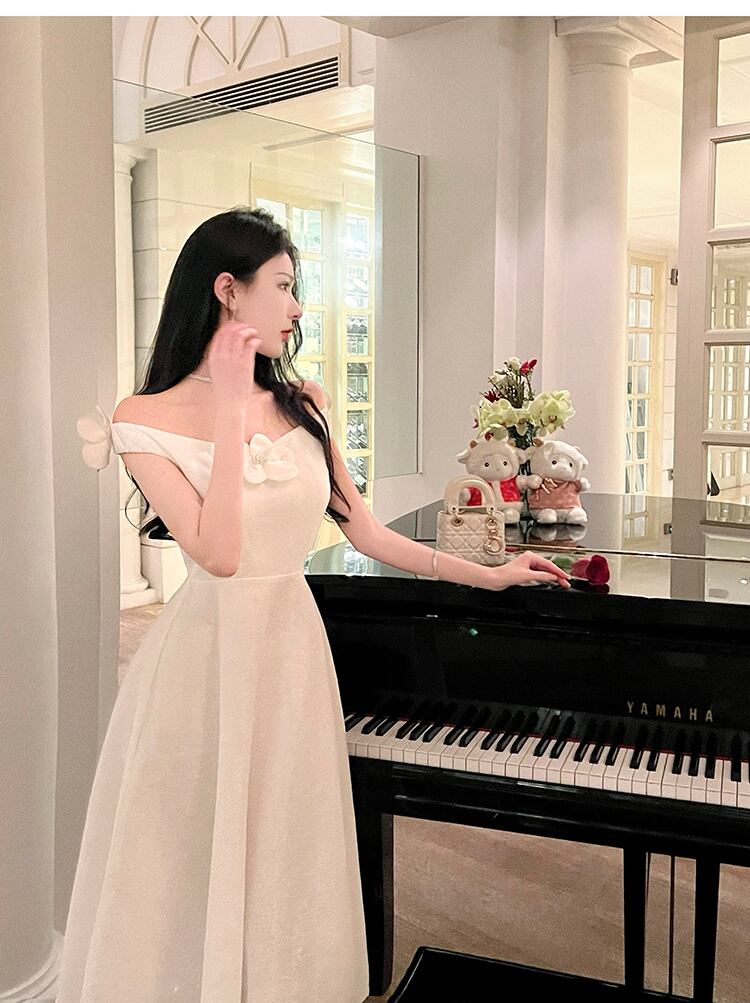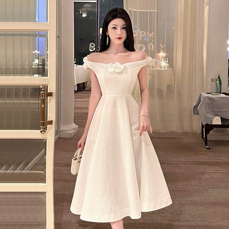 白いイブニングドレスハイエンドライトラグジュアリーニッチロングスカート宴会気質は薄く、見事でセクシーなワンショルダードレス micat78361806565