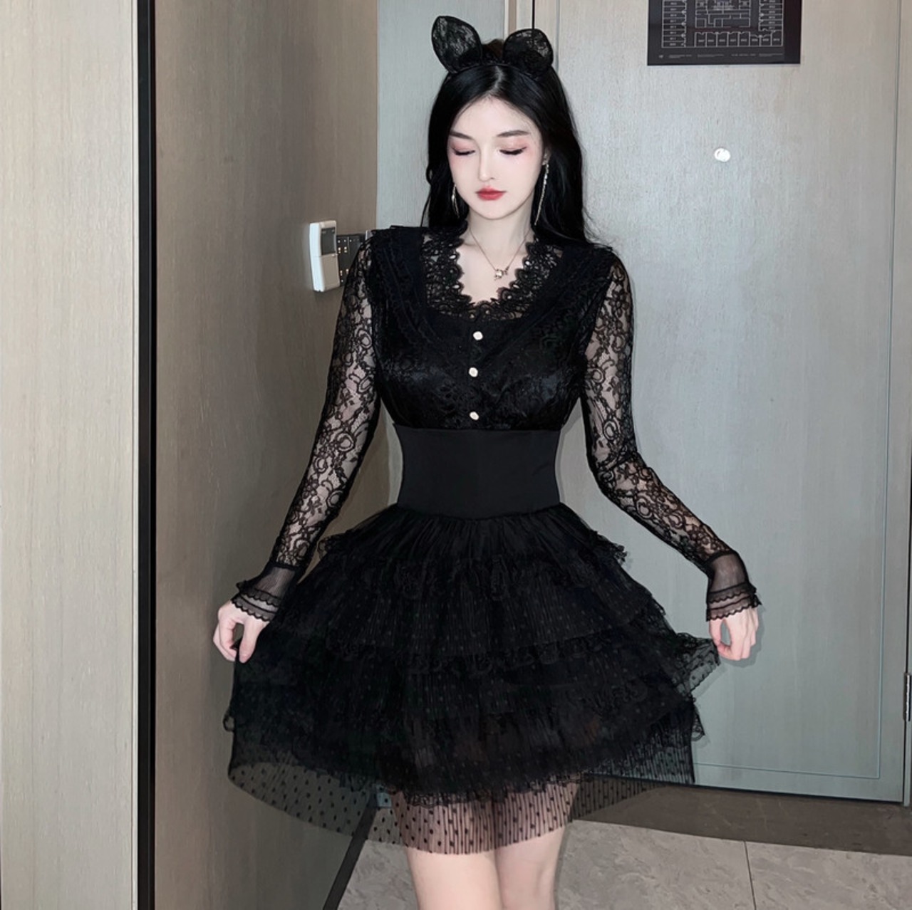 スーパーフェアリーフレンチスーツレディース秋ドレスレーストップ+ハイウエストケーキスカート2点セット micat11188291000
