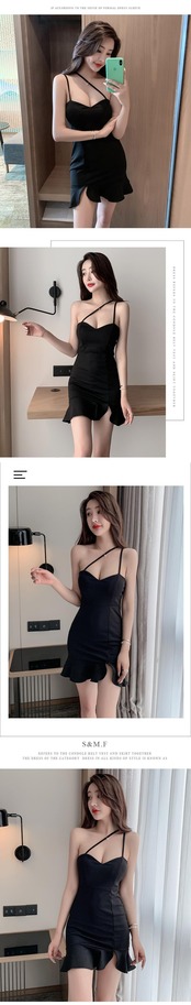 ナイトクラブの女性の夜市の技術者のオーバーオールのセクシーなローカットの深い V ネック フィッシュテール スカート チューブ トップ サスペンダー ドレス micat86346039589