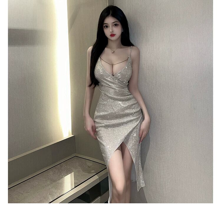 ナイトクラブの女性の夜の作業服オーバーオール光沢のあるシルクのイブニングドレスセクシーなローカット V ネックサスペンダードレス Vネック yeyij1393381179