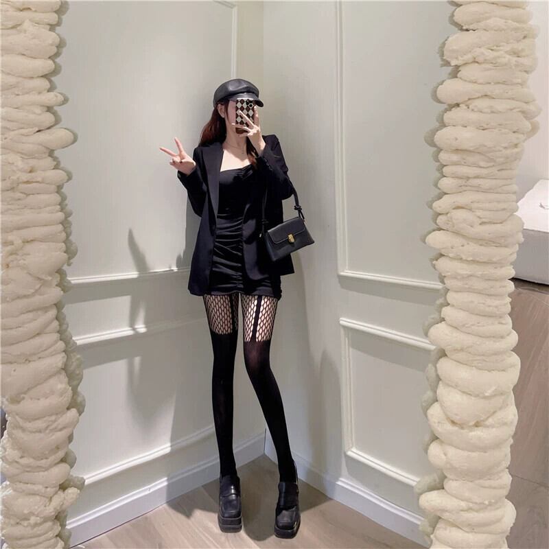 セクシーな黒ストッキング女性の極薄網タイツメッシュステッチロリータjkオールマッチ美脚ロンパースソックス ブラック yeyij44118797687