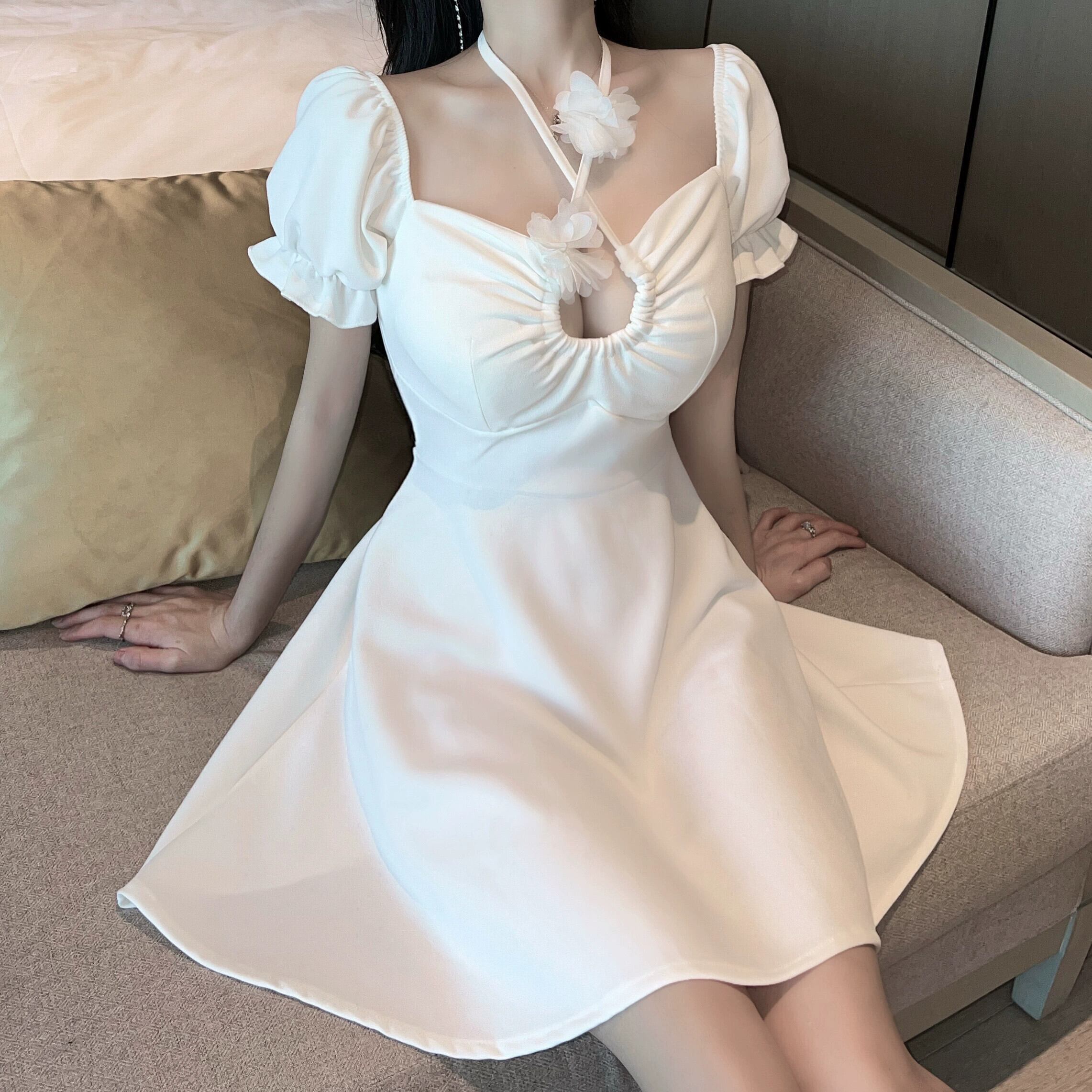 ライブ服アンカー Pogenic -end Pure Desire フレンチ セクシー スクエア ネック パフ スリーブ スリム ハンギング ネック ドレス ピュア スクウェア yeyij47142634829