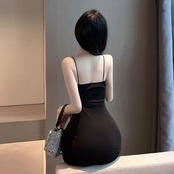 ナイトクラブの女性の夜の作業服フットバスオーバーオールセクシーなローカットクロスディープ V ネックストラップドレス Vネック yeyij47580510283