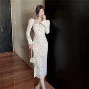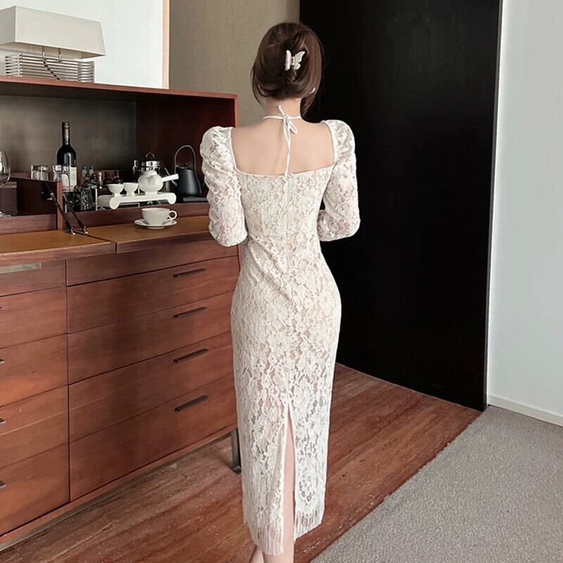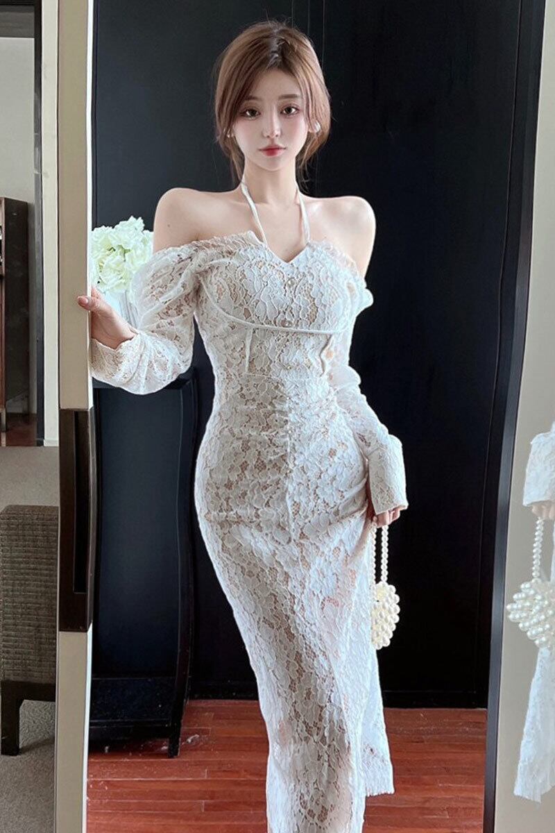ヘップバーン スタイル イブニング ドレス スカート 女性らしさ ライト ラグジュアリー ニッチ ハイエンド フレンチ セクシー ホワイト レース ホルター ネック ドレス yeyij90822198390