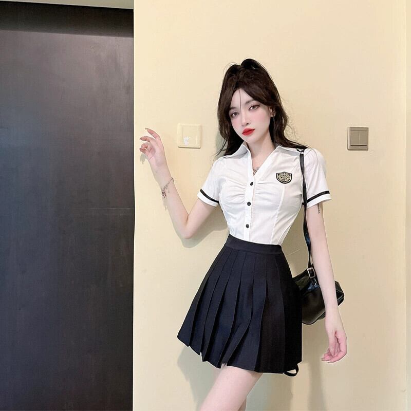 JK Unim オーバーオールスーツ女性夏 Yinglun カレッジスタイル半袖デザインセンスニッチトップ白 V ネックシャツ ホワイト Vネック yeyij15288998170
