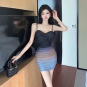 ライブ服アンカー Pogenic 純粋な欲望甘くてスパイシーなグラデーションカラーのセクシーなメッシュタイトなヒップスリングドレス 大人ガーリー スウィート キュート カジュアル ピュア yeyij2264452799