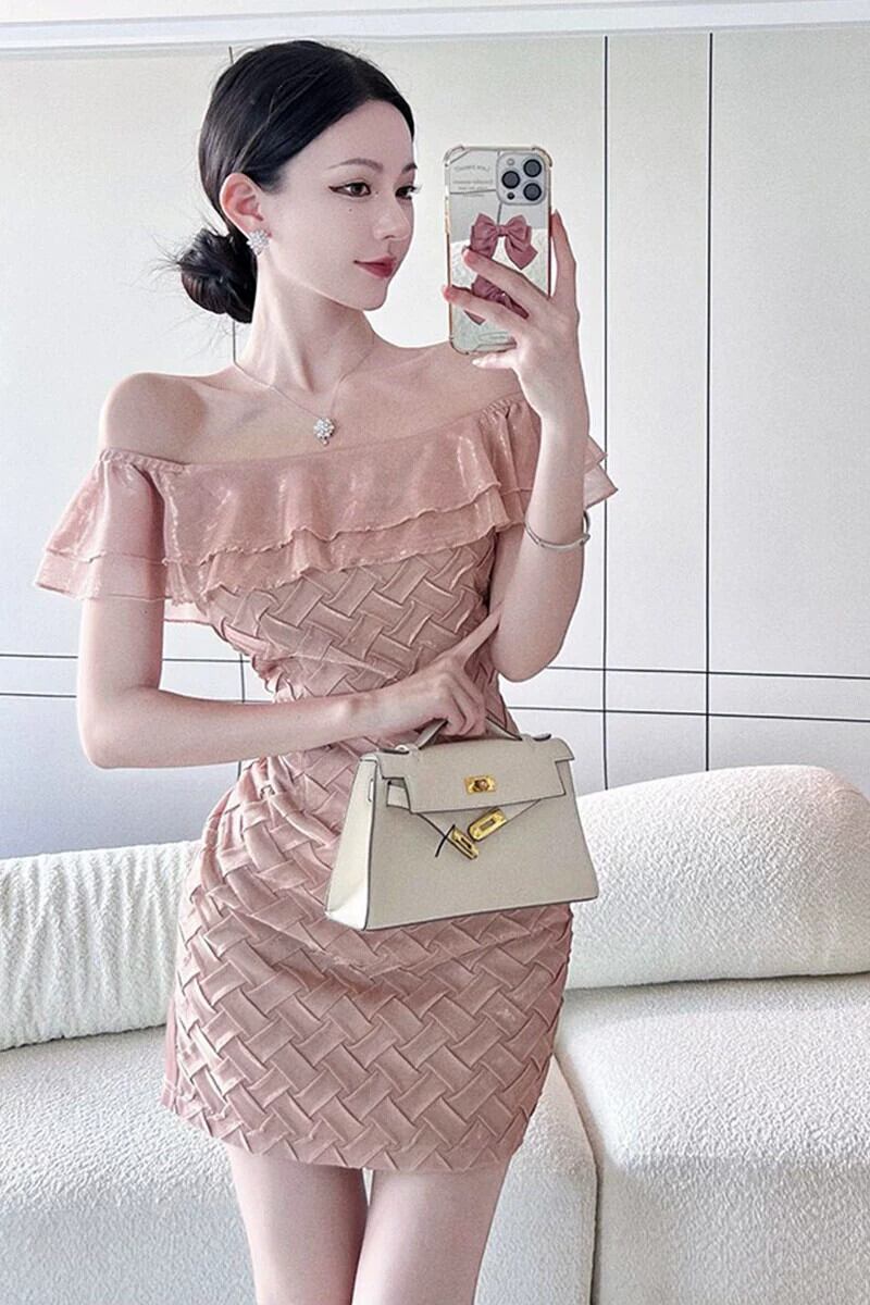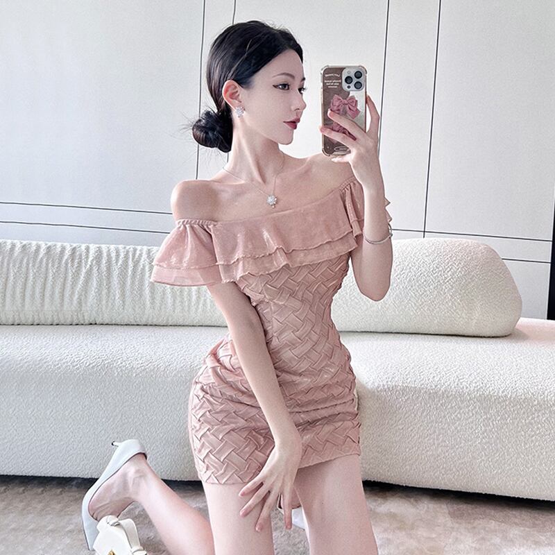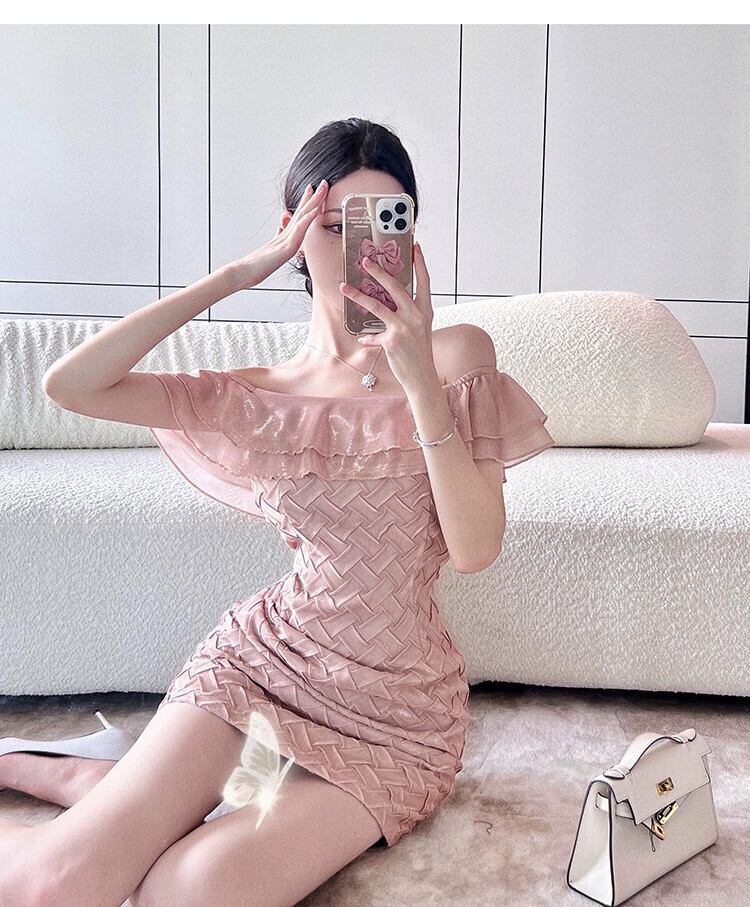 ライブ服女性アンカー pogenic ハイエンドフレンチショートドレスセクシーなワンショルダーオフショルダードレス yeyij40164867508