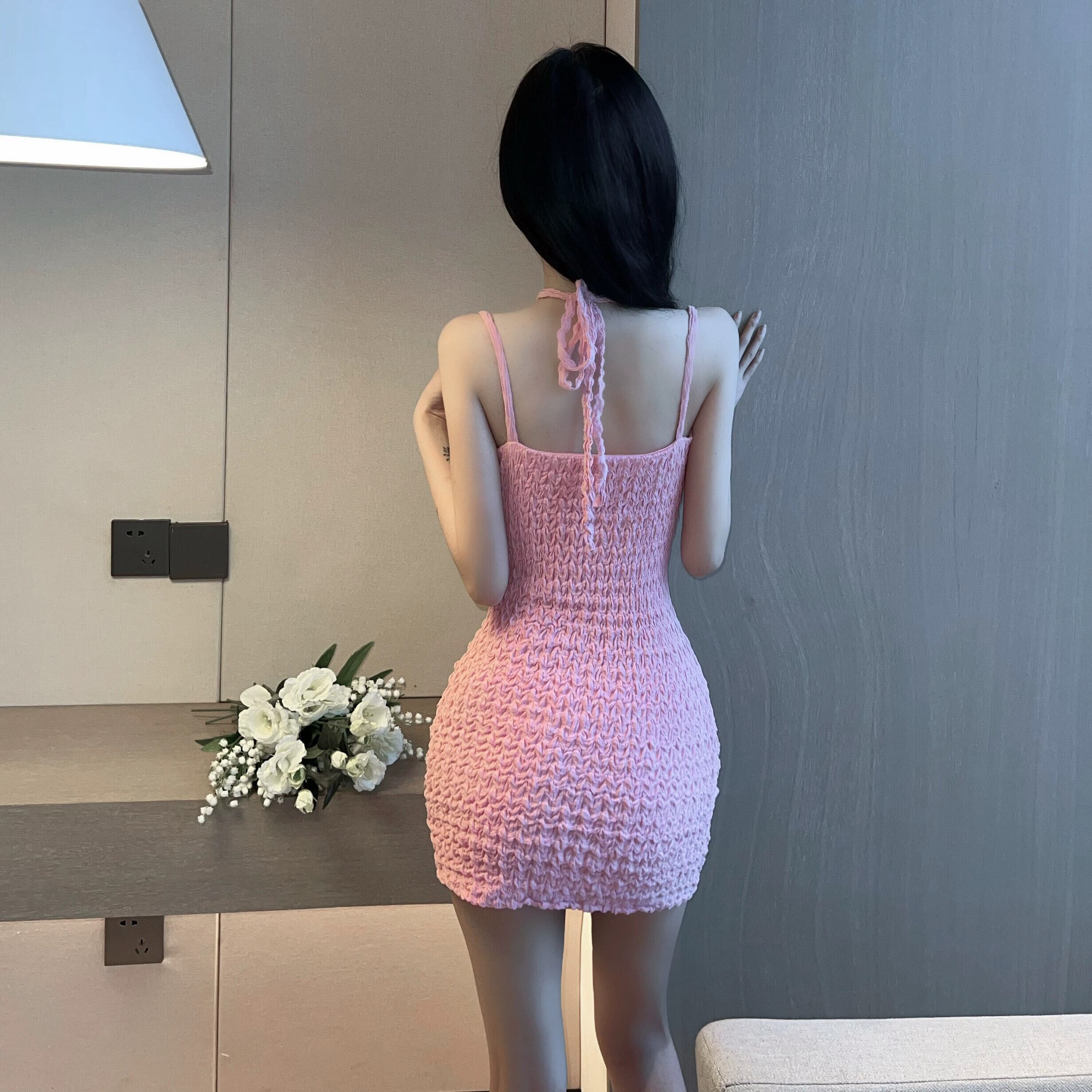ライブ服女性アンカー pogenic ハイエンド純粋な欲望甘くてスパイシーなセクシーなローカット深い V ネックピンクサスペンダードレス 大人ガーリー スウィート キュート カジュアル Vネック ピュア yeyij48325993890
