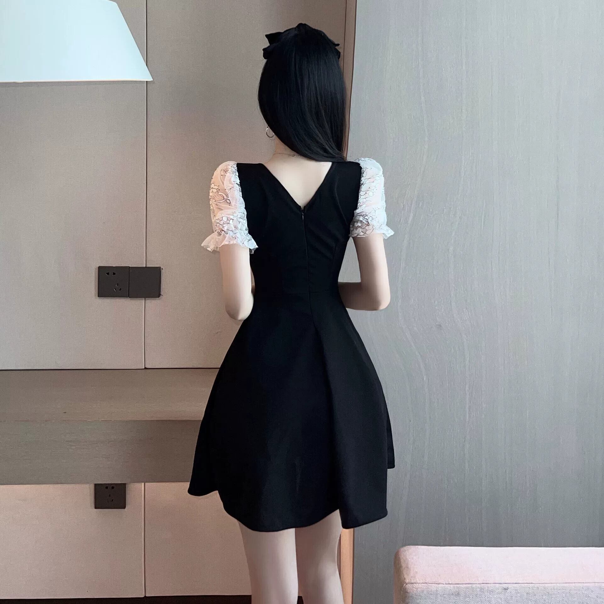 ライブ服アンカー Pogenic フレンチナイトフットバス技術者作業服セクシーなスクエアカラーフェイクツーピースドレス スクウェア yeyij28723959439