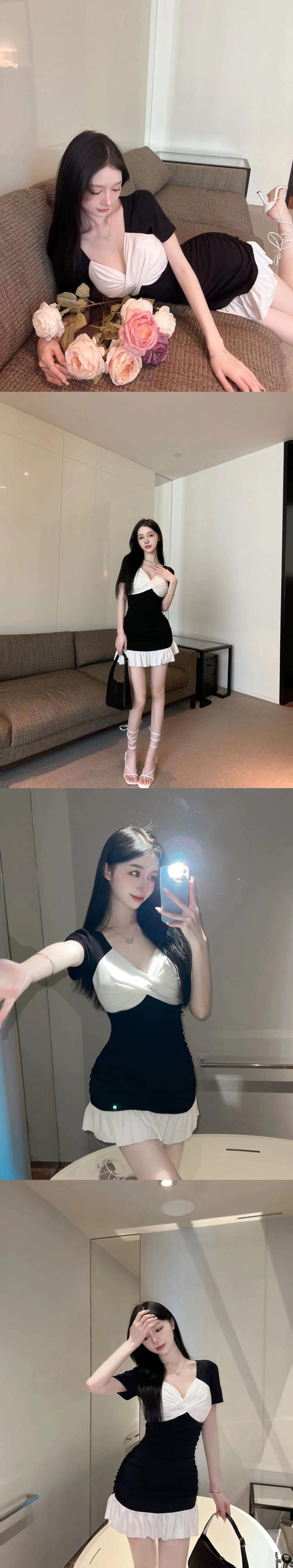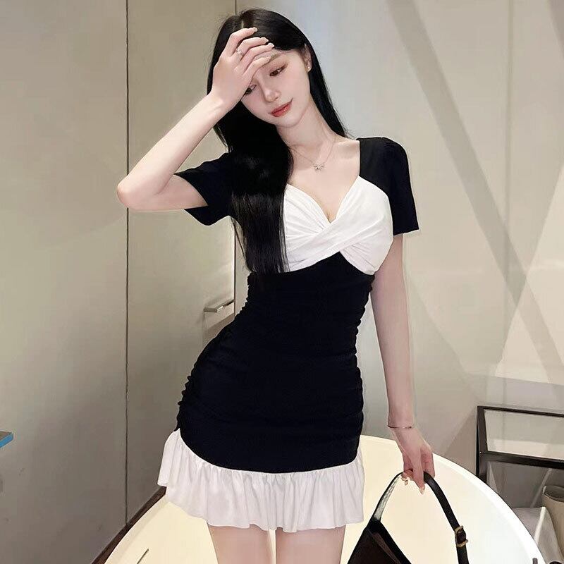 ナイトクラブ女性作業服店ローカットディープ V ネック小さな半袖マーメイドスカートナイトクラブセクシーなドレス Vネック yeyij16912514012