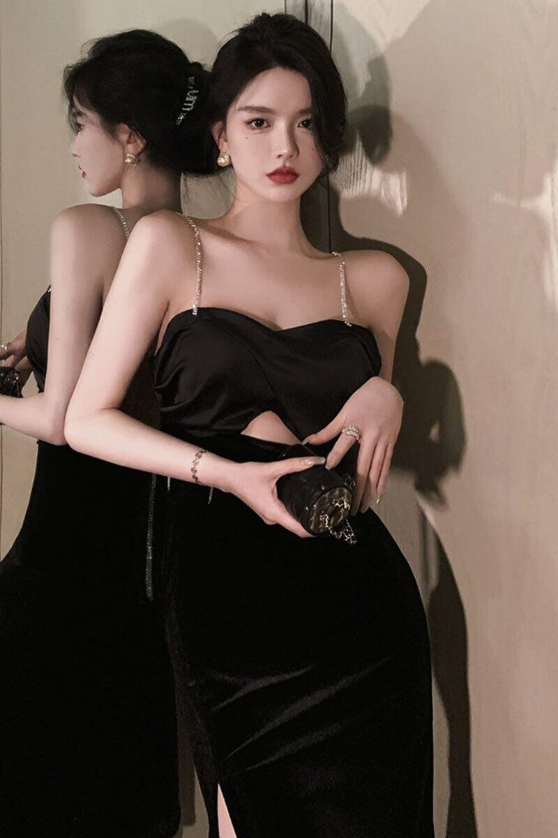 ヘップバーンスタイル黒のイブニングドレスハイエンドライト高級ニッチ誕生日フレンチハイエンドセクシーなセクシーなホルタードレス ブラック yeyij57254573284
