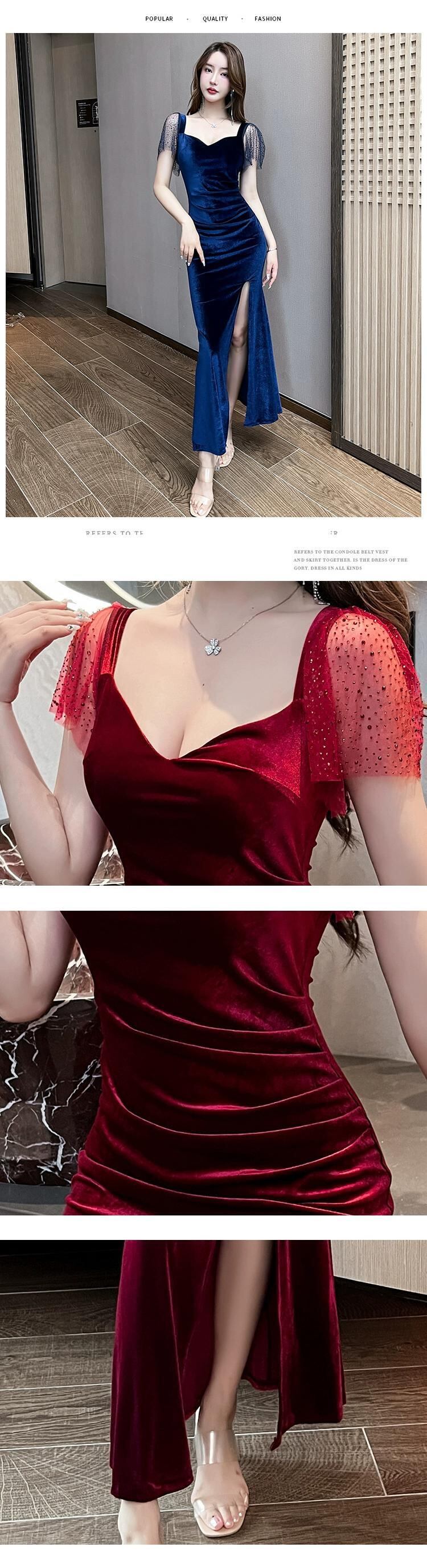 イブニングドレスロングスカートナイトクラブ女性の夜の作業服宴会気質ハイエンドセクシーなゴールドベルベットロングドレス yeyij63821478592