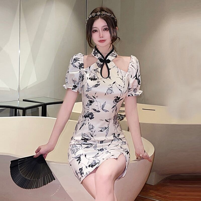 ライブ服女性アンカー pogenic 高度なフランス語改良版若いセクシーなストラップレス ホルターネック チャイナ ドレス yeyij60779023915