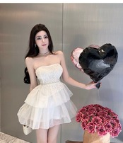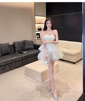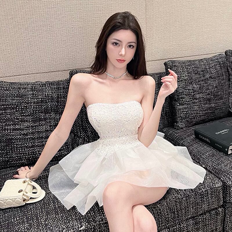 誕生日ドレス ハイエンド ライト ラグジュアリー ニッチ プリンセス ドレス 大人 ホワイト ワンショルダー セクシー ふわふわ チューブ トップ ドレス yeyij56878458552