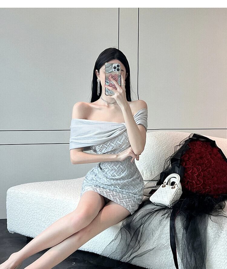 誕生日ドレスの女性のショートイブニングドレスハイエンドライトラグジュアリーニッチハイエンドセクシーなワンネックオフショルダードレス yeyij39455644005