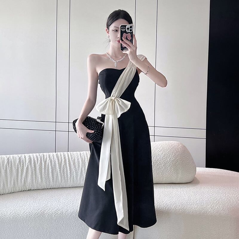 ヘップバーンスタイルのイブニングドレスの女性のロングスカートハイエンドライト高級ニッチハイエンド気質セクシーなワンショルダーチューブトップドレス yeyij30927629128