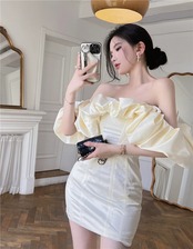 婚約誕生日ドレスハイエンドライトラグジュアリーニッチハイエンドセクシーなワンショルダーホワイトチューブトップドレス yeyij4663316681