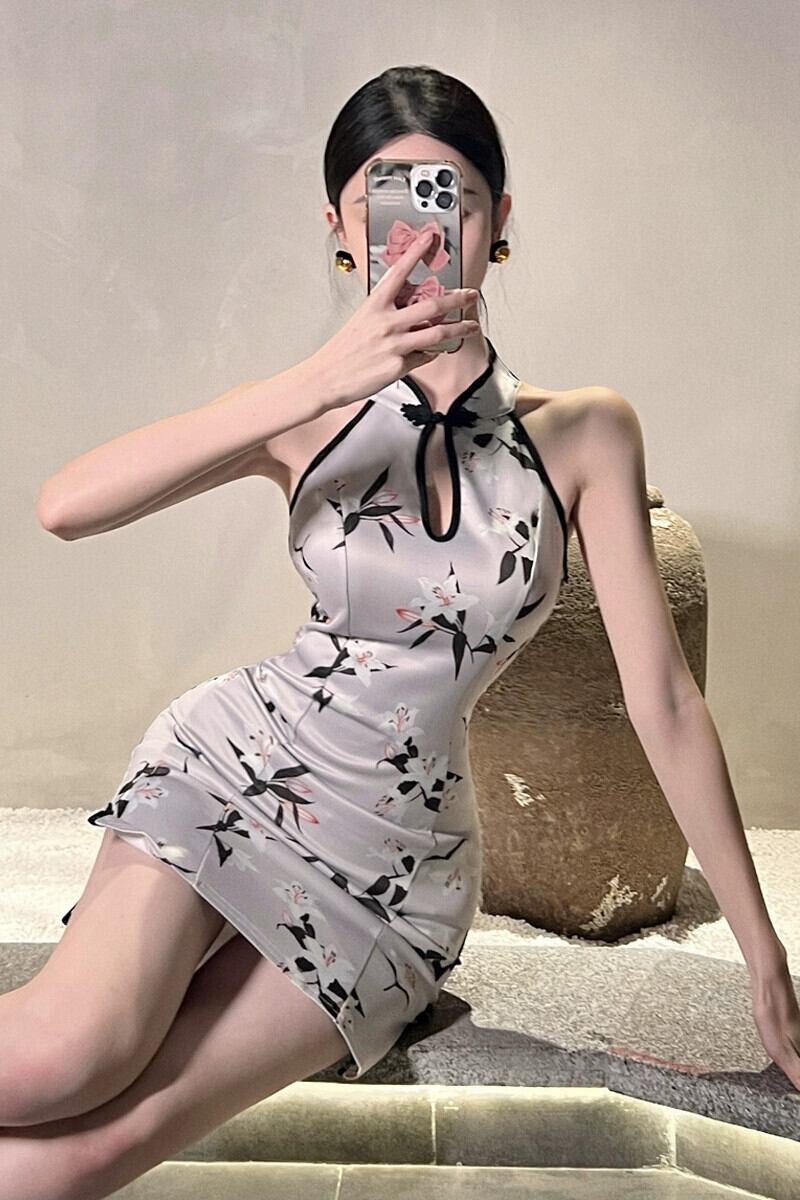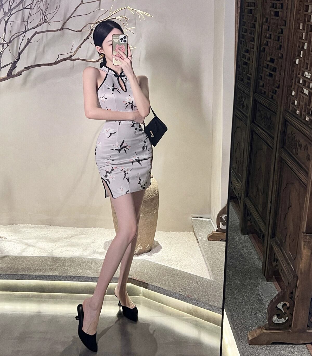 ライブ服女性アンカー pogenic 若いセクシーなオープンバックストラップレスホルターネック改良されたチャイナ ドレス yeyij90272727914