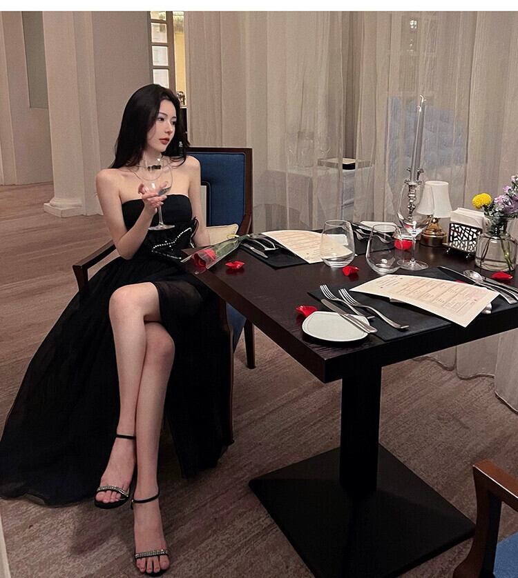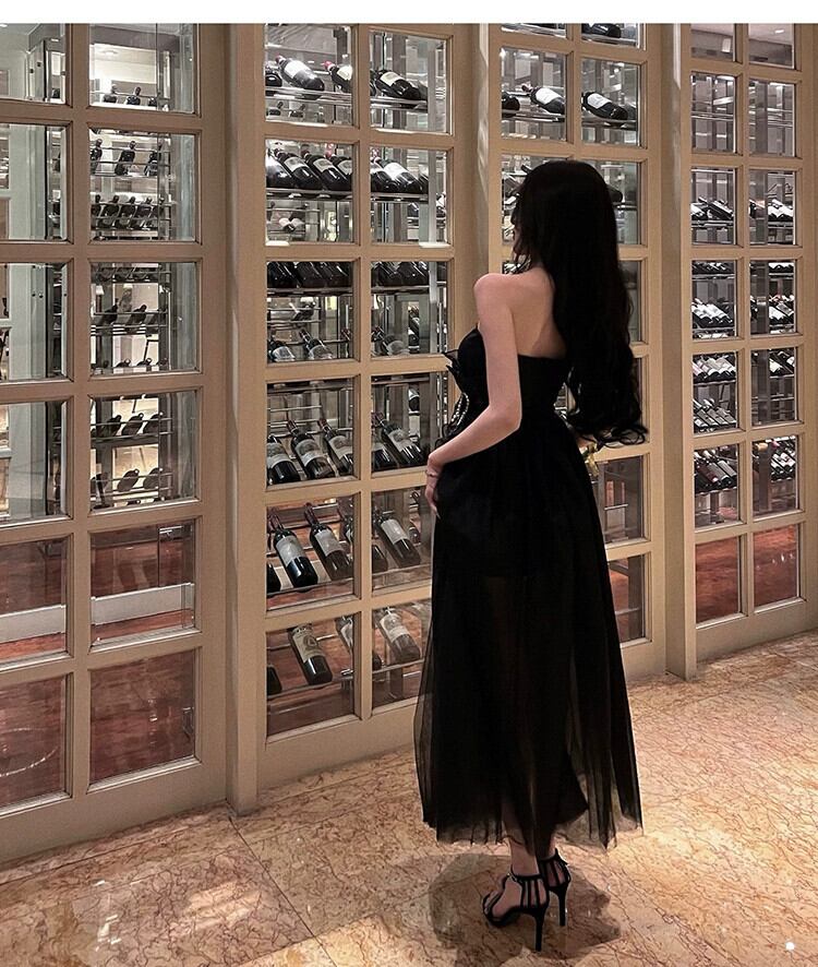 ヘップバーンスタイルのイブニングドレスハイエンドライト高級ニッチ黒人女性セレブ気質ハイエンドセクシーなチューブトップドレス ブラック yeyij79977814761