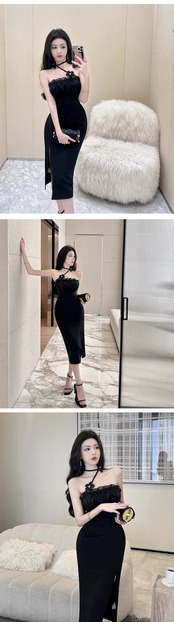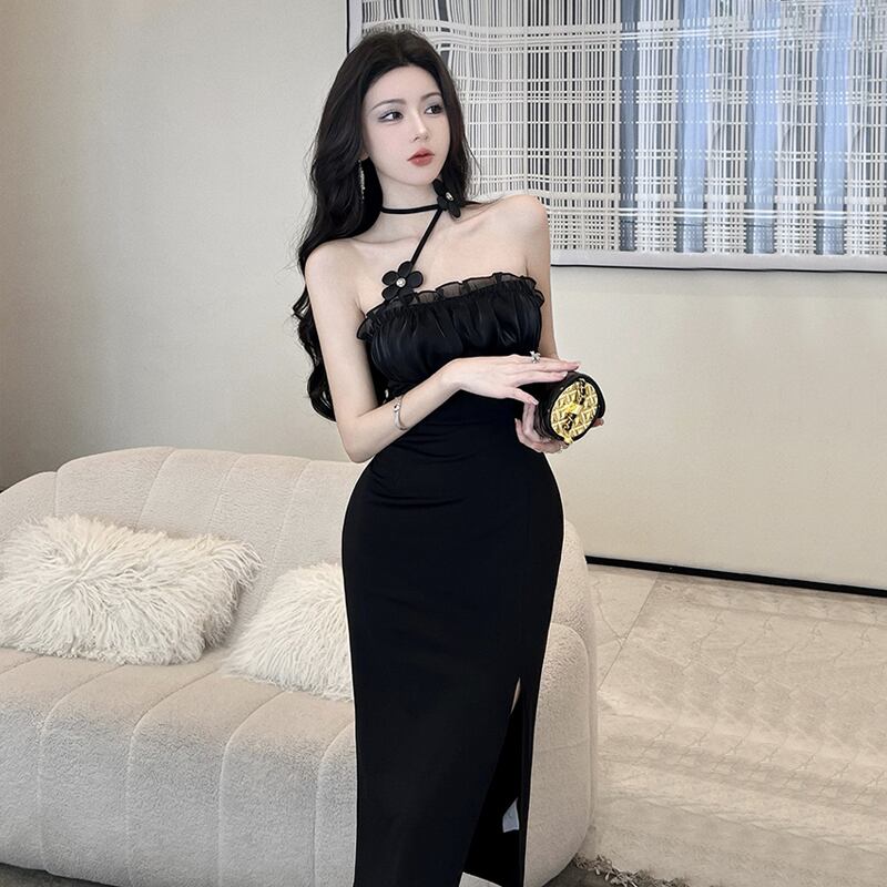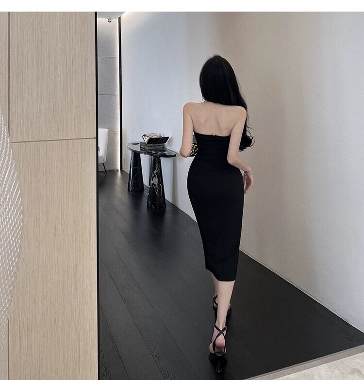 ヘップバーンスタイルのイブニングドレスハイエンドライトラグジュアリー少人数ハイエンドセンスリトルブラックドレス気質セクシーなチューブトップホルターネックドレス yeyij67264818566