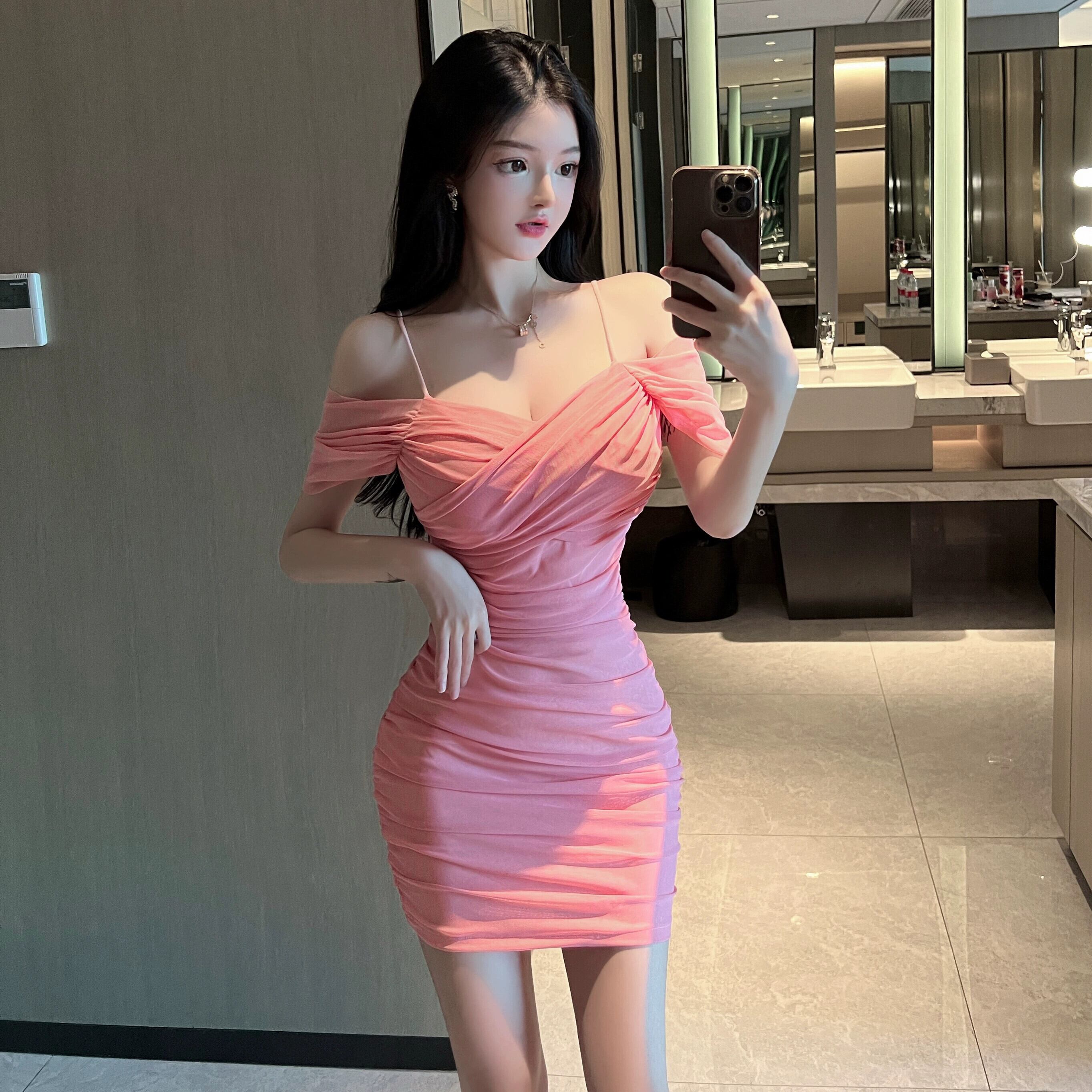 ライブ服アンカー Pogenic -end Pure Desire セクシーなワンラインネックメッシュストラップレススリングドレス ピュア yeyij2222543580