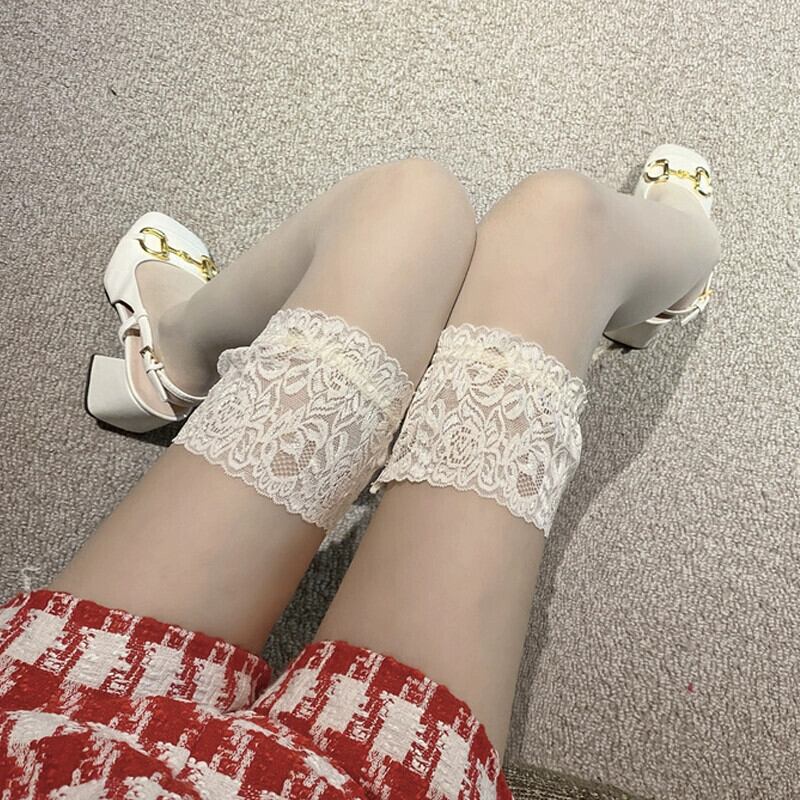白シルクセクシー黒ストッキングレディース極薄ステッチレースレースロリータJK美脚膝上ストッキング ホワイト ブラック タイツ ソックス yeyij17254178242