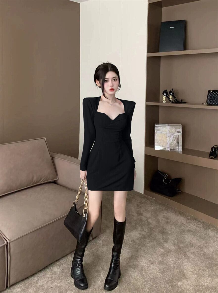 セクシーなドレス秋ドレス気質女神ファンスパイスガール純粋な欲望スタイルローカットディープ V ネックパッケージヒップインナースカート オータム 秋物 Vネック ピュア yeyij12623074237