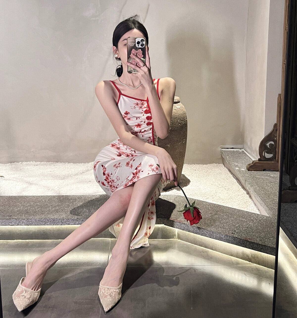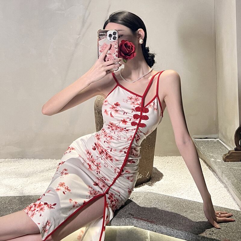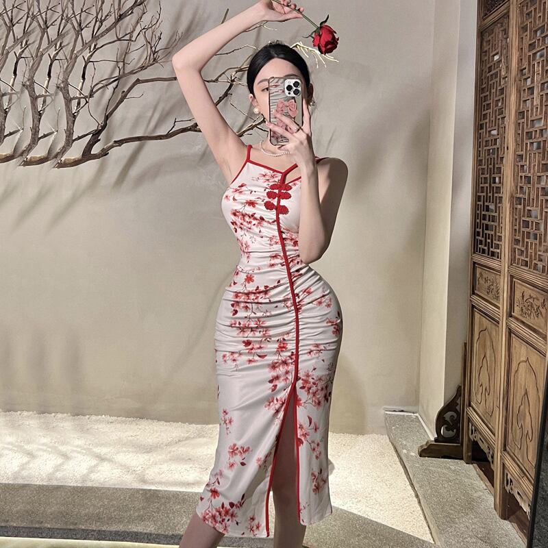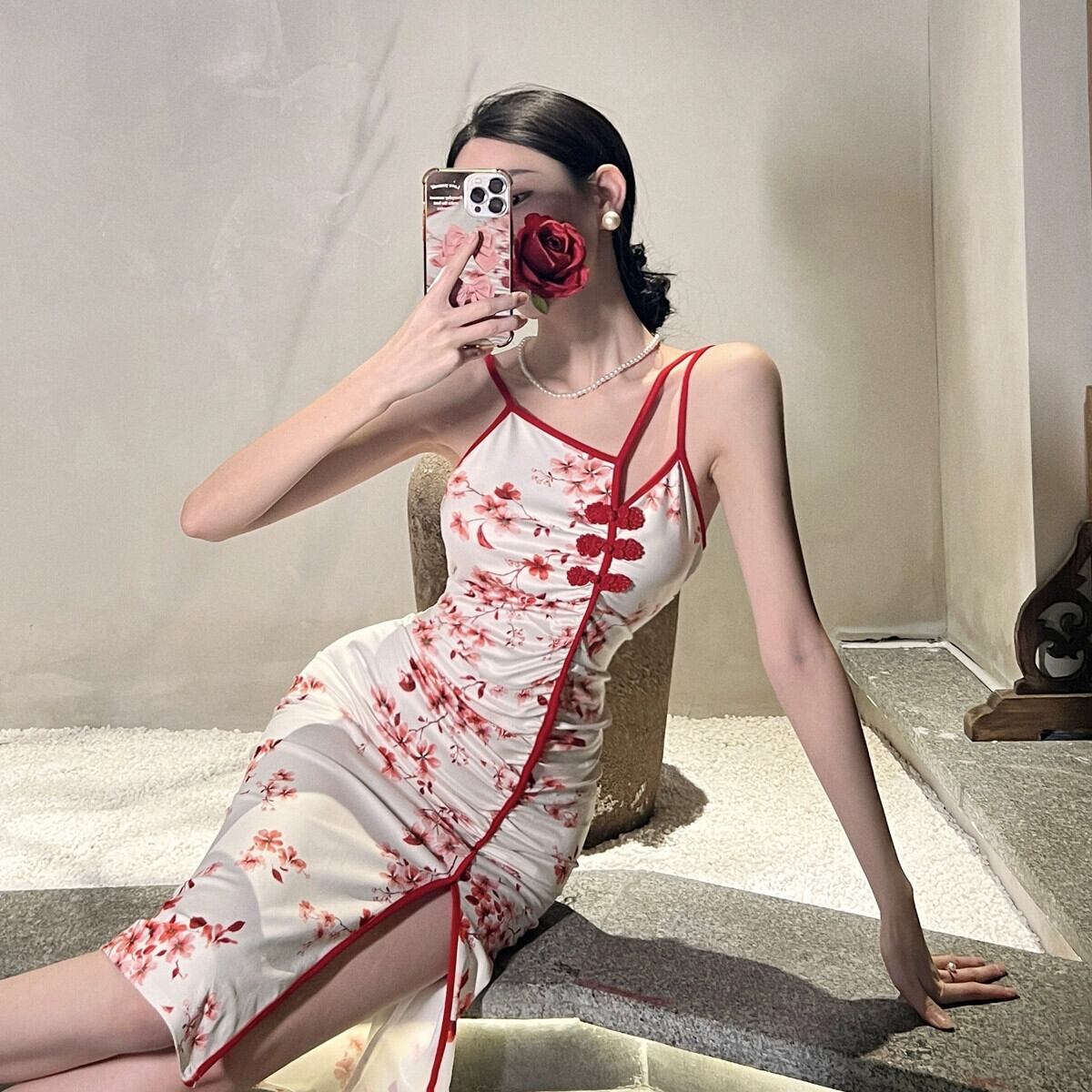 ライブ服アンカー Pogenic 高度な中国スタイルのセクシーな若いレトロなバックルチャイナサスペンダードレス yeyij70373507719