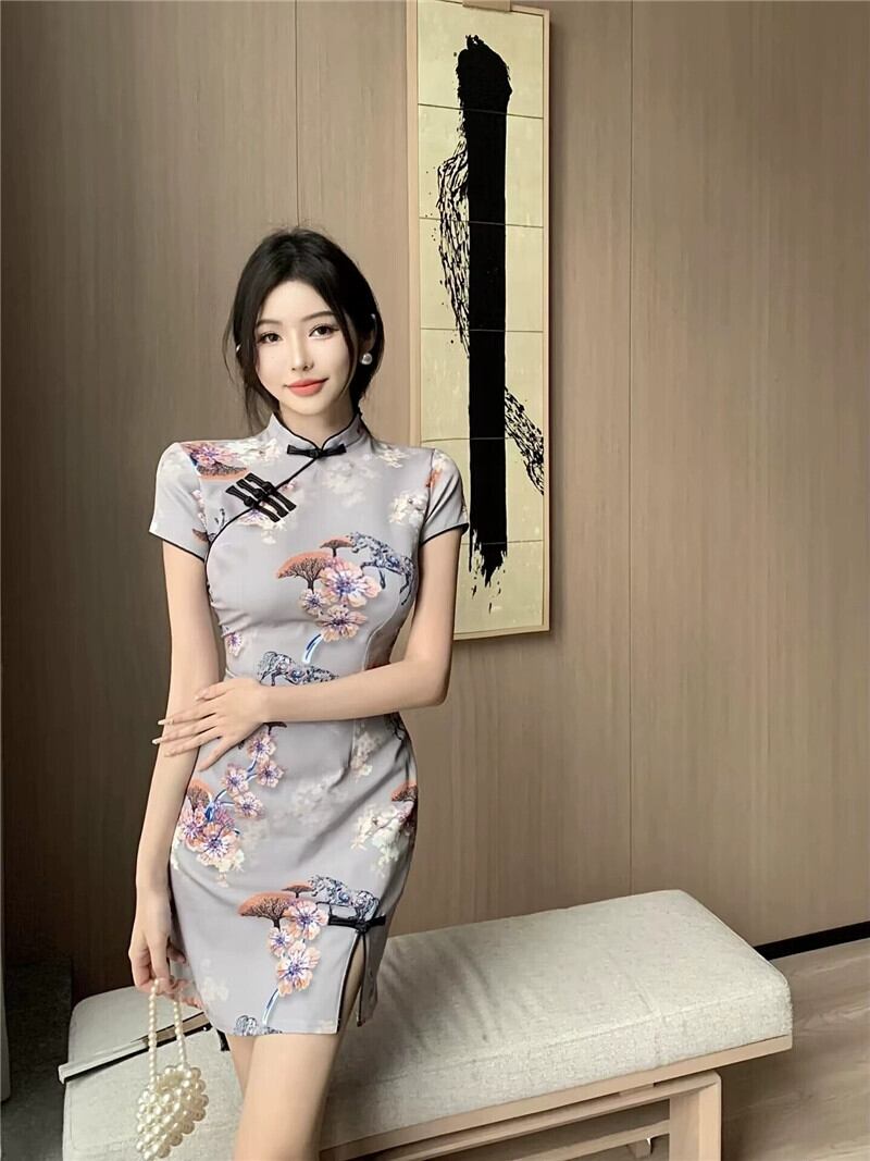 ライブ服女性アンカー pogenic 若いセクシーなレトロなプリントショート改良されたチャイナ ドレス yeyij40158497695