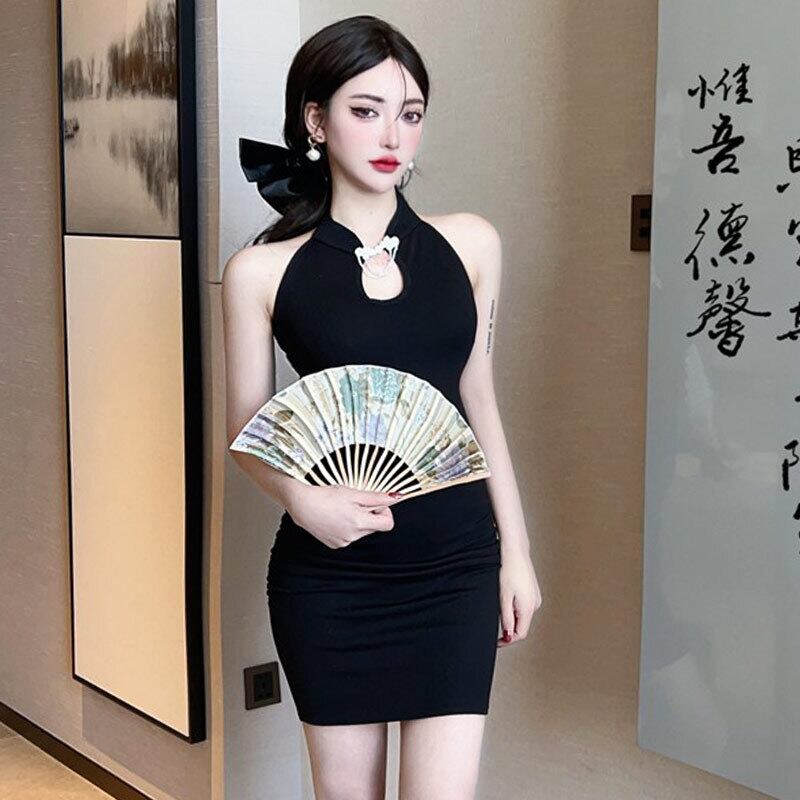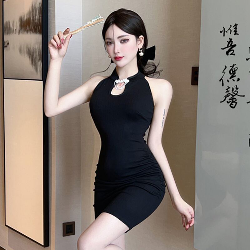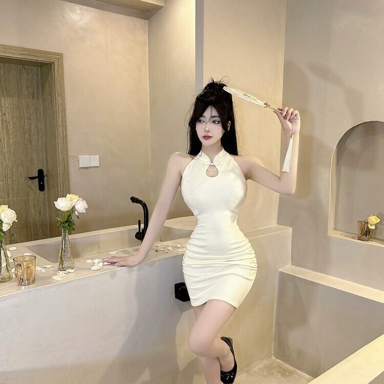 ライブ服アンカー Pogenic 純粋な欲望若い女の子セクシーな背中の開いたニットホルターネックチャイナドレス ピュア yeyij49639039227