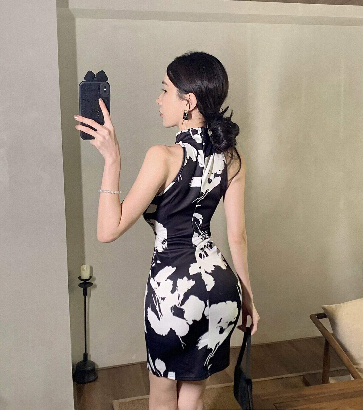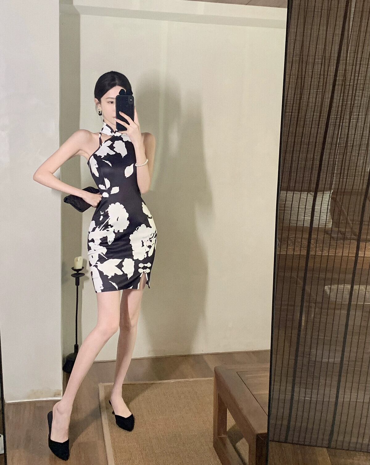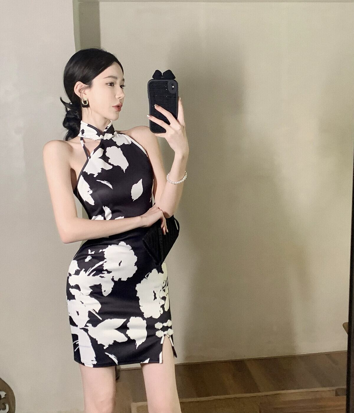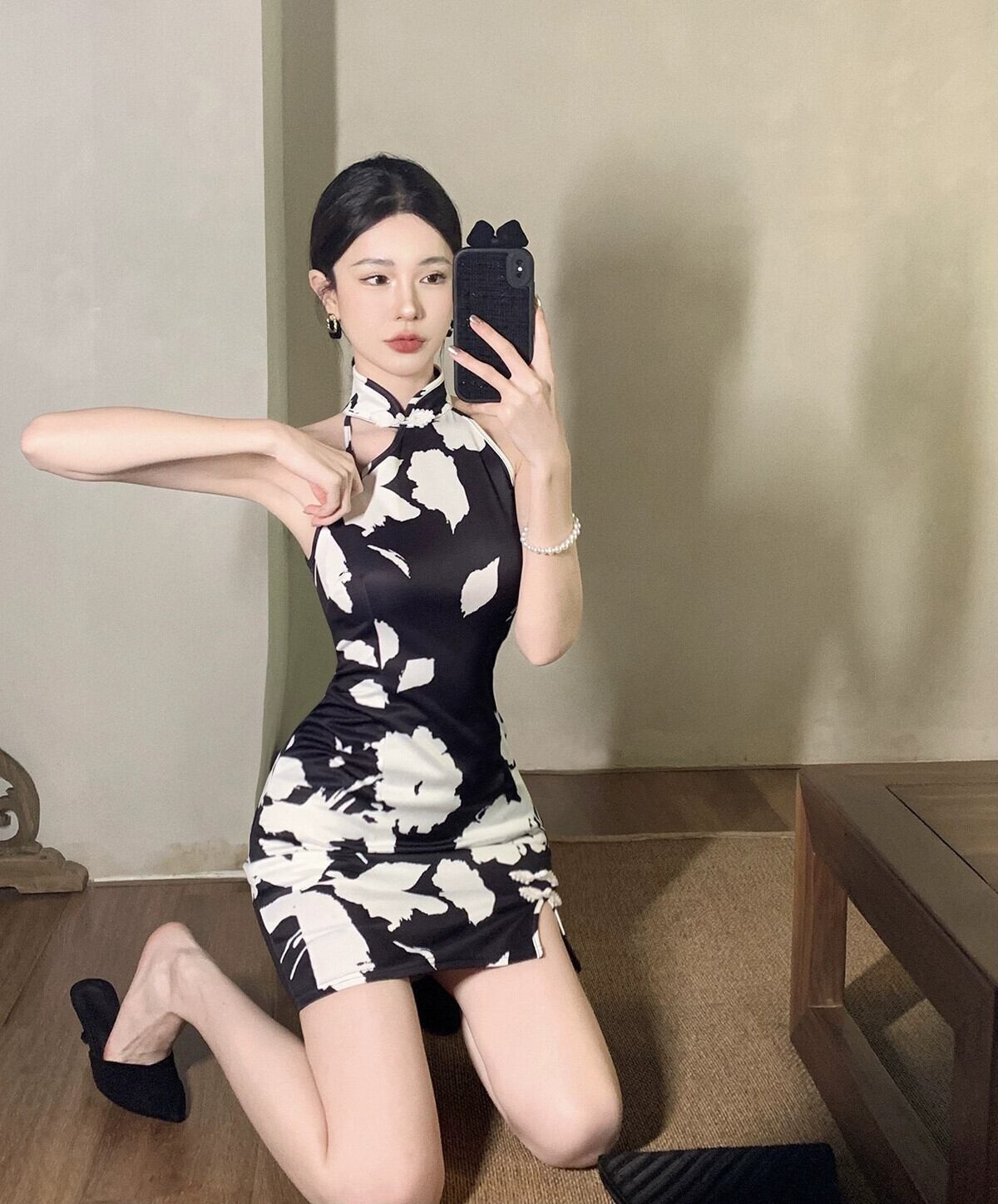 ライブ服女性アンカー pogenic 若いセクシーな黒のストラップレス ホルター ネック改良されたチャイナ ドレス ブラック yeyij64410582394